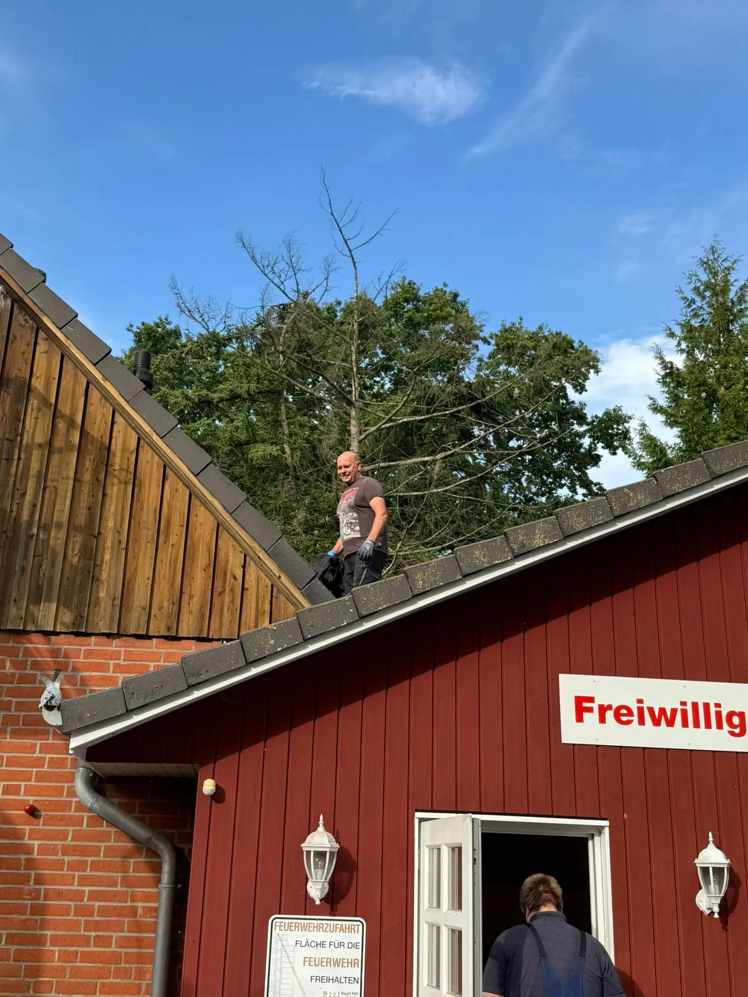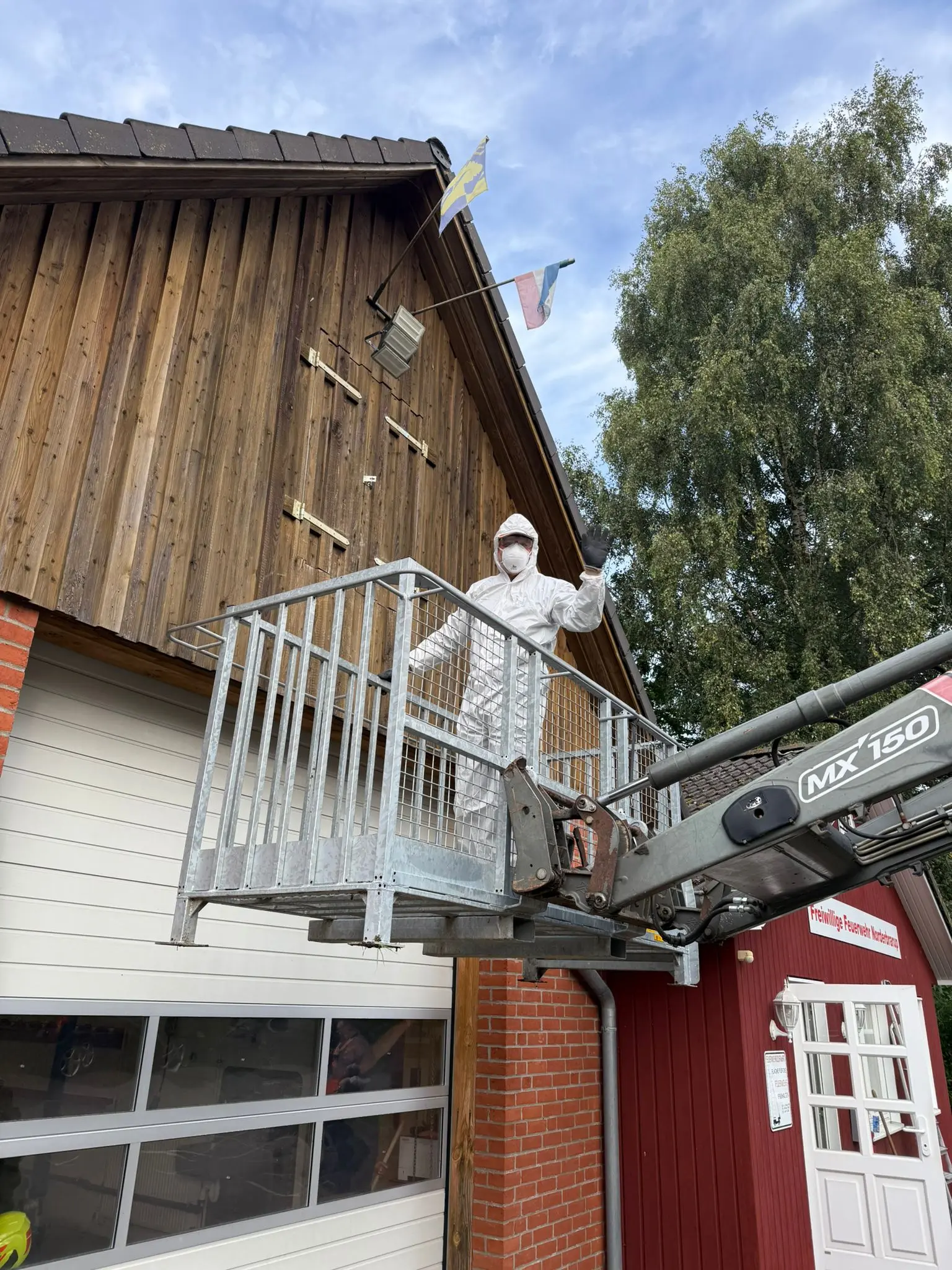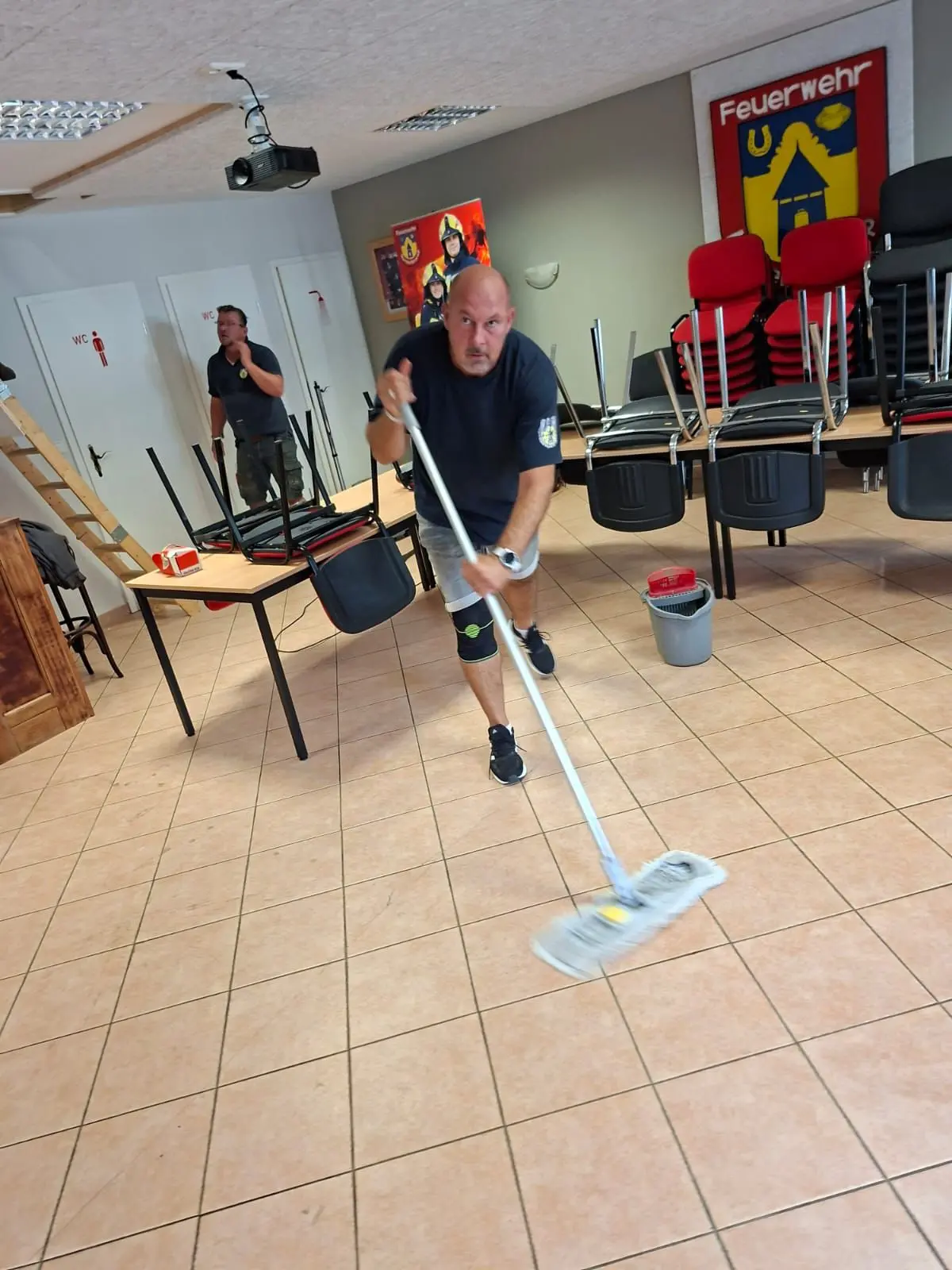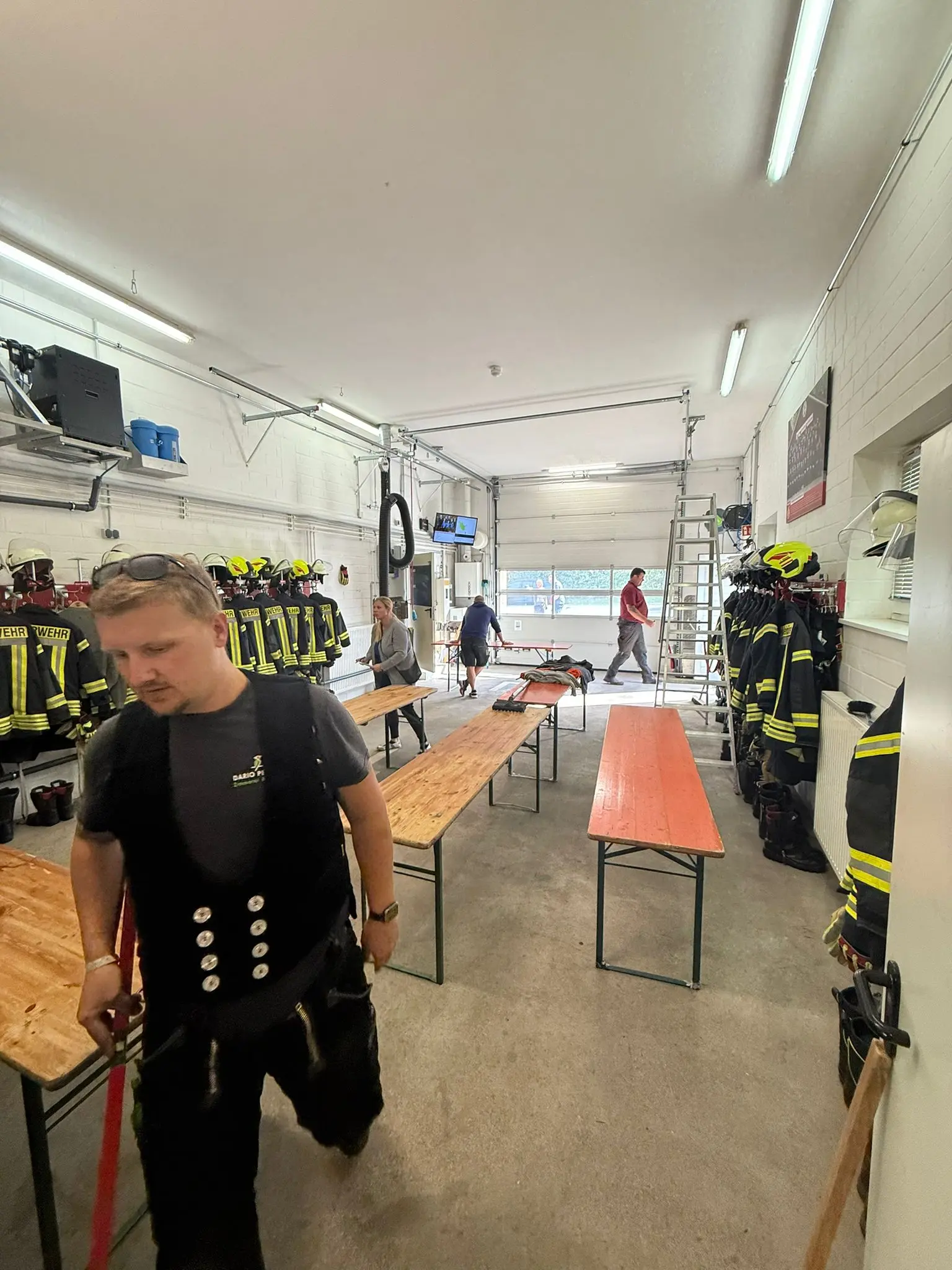 Am Vormittag und Nachmittag teilten sich die Helferinnen und Helfer in zwei Teams auf. Während ein Teil der Mannschaft im Gemeindegebiet unterwegs war, um die Hydranten zu spülen und so die Einsatzbereitschaft sicherzustellen, kümmerte sich das zweite Team am Gerätehaus um vielfältige Arbeiten. Dort wurde die Atemschutzwerkstatt im Schuppen fertiggestellt, das Gerätehaus erhielt einen frischen Anstrich, das Dach wurde gereinigt, im neuen MZF ein Klapptisch eingebaut und verschiedene Reinigungsarbeiten durchgeführt. Zur Mittagszeit stärkten sich alle gemeinsam mit leckeren Brat-Hotdogs, bevor es am Nachmittag mit neuer Energie weiterging. Dank der tatkräftigen Unterstützung konnten sämtliche Aufgaben erfolgreich abgeschlossen werden – ein rundum gelungener Arbeitsdienst.