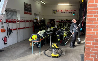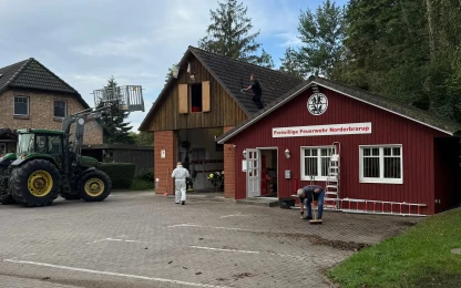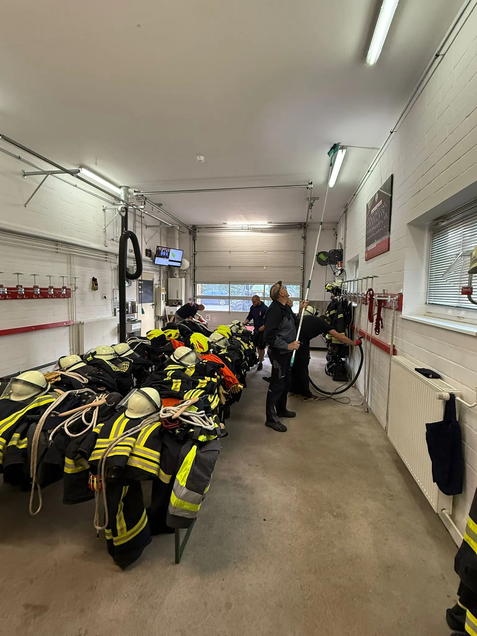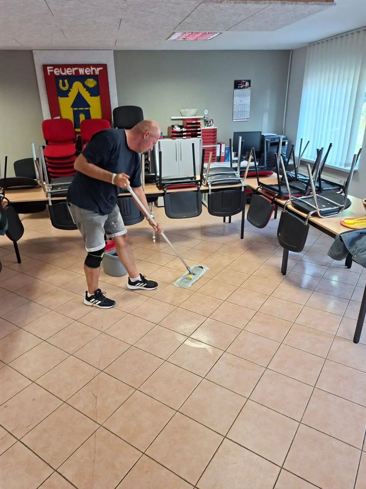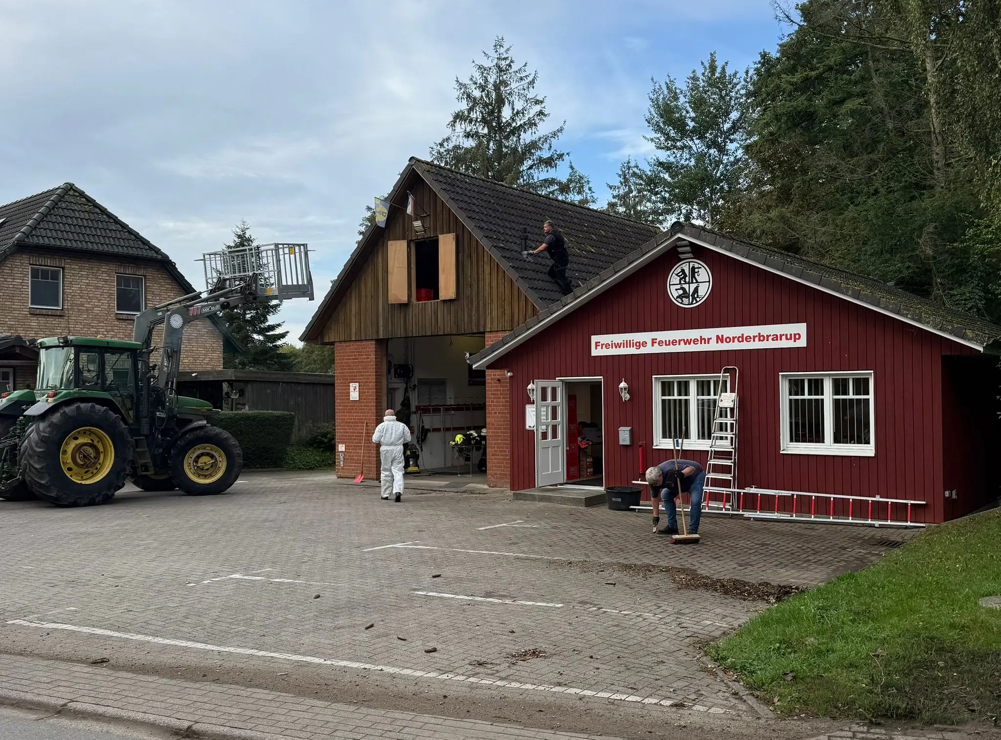 Am Vormittag und Nachmittag teilten sich die Helferinnen und Helfer in zwei Teams auf. Während ein Teil der Mannschaft im Gemeindegebiet unterwegs war, um die Hydranten zu spülen und so die Einsatzbereitschaft sicherzustellen, kümmerte sich das zweite Team am Gerätehaus um vielfältige Arbeiten. Dort wurde die Atemschutzwerkstatt im Schuppen fertiggestellt, das Gerätehaus erhielt einen frischen Anstrich, das Dach wurde gereinigt, im neuen MZF ein Klapptisch eingebaut und verschiedene Reinigungsarbeiten durchgeführt. Zur Mittagszeit stärkten sich alle gemeinsam mit leckeren Brat-Hotdogs, bevor es am Nachmittag mit neuer Energie weiterging. Dank der tatkräftigen Unterstützung konnten sämtliche Aufgaben erfolgreich abgeschlossen werden – ein rundum gelungener Arbeitsdienst.