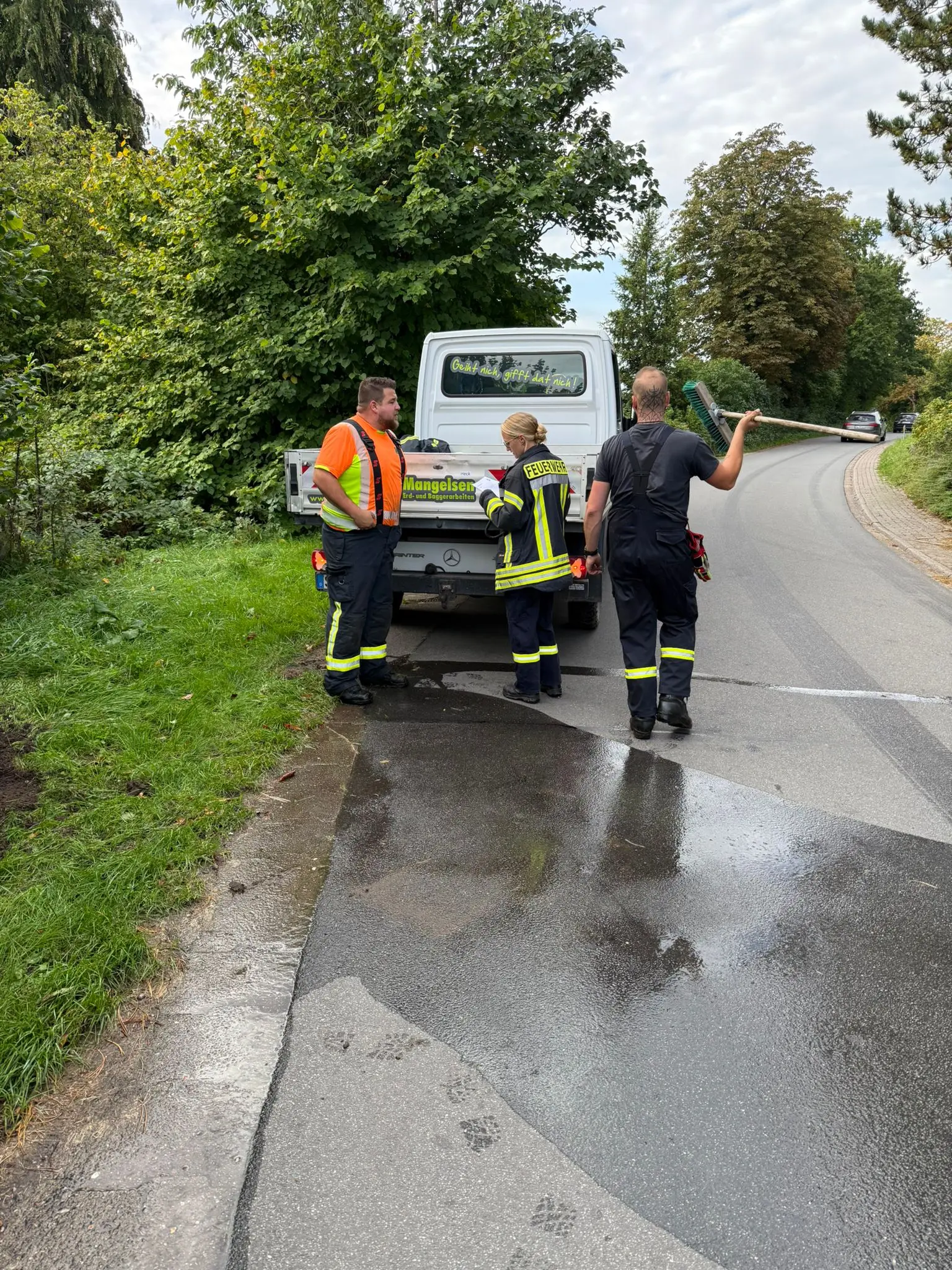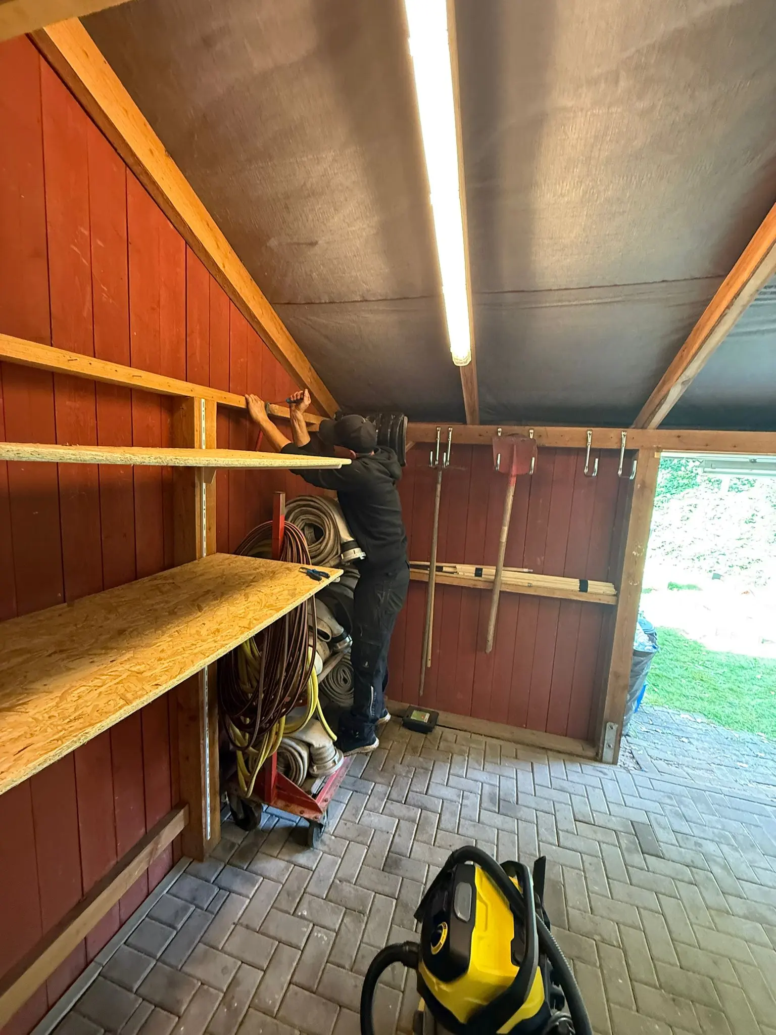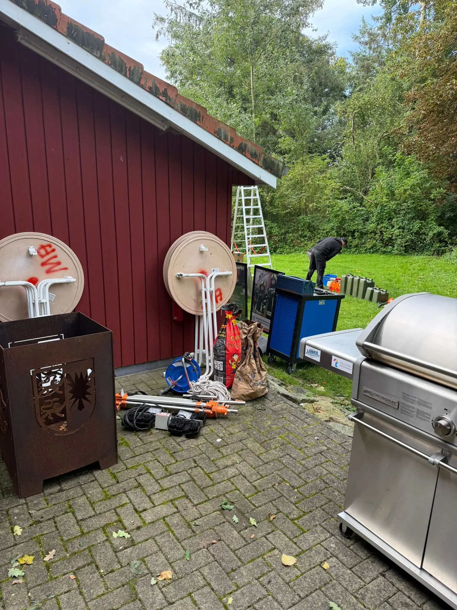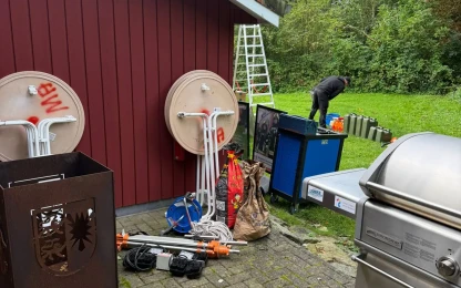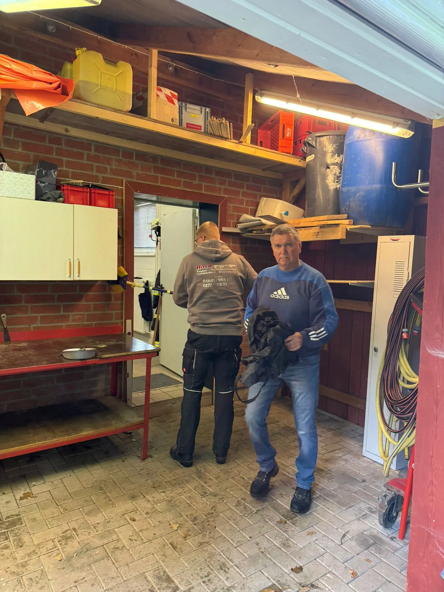 Am Vormittag und Nachmittag teilten sich die Helferinnen und Helfer in zwei Teams auf. Während ein Teil der Mannschaft im Gemeindegebiet unterwegs war, um die Hydranten zu spülen und so die Einsatzbereitschaft sicherzustellen, kümmerte sich das zweite Team am Gerätehaus um vielfältige Arbeiten. Dort wurde die Atemschutzwerkstatt im Schuppen fertiggestellt, das Gerätehaus erhielt einen frischen Anstrich, das Dach wurde gereinigt, im neuen MZF ein Klapptisch eingebaut und verschiedene Reinigungsarbeiten durchgeführt. Zur Mittagszeit stärkten sich alle gemeinsam mit leckeren Brat-Hotdogs, bevor es am Nachmittag mit neuer Energie weiterging. Dank der tatkräftigen Unterstützung konnten sämtliche Aufgaben erfolgreich abgeschlossen werden – ein rundum gelungener Arbeitsdienst.