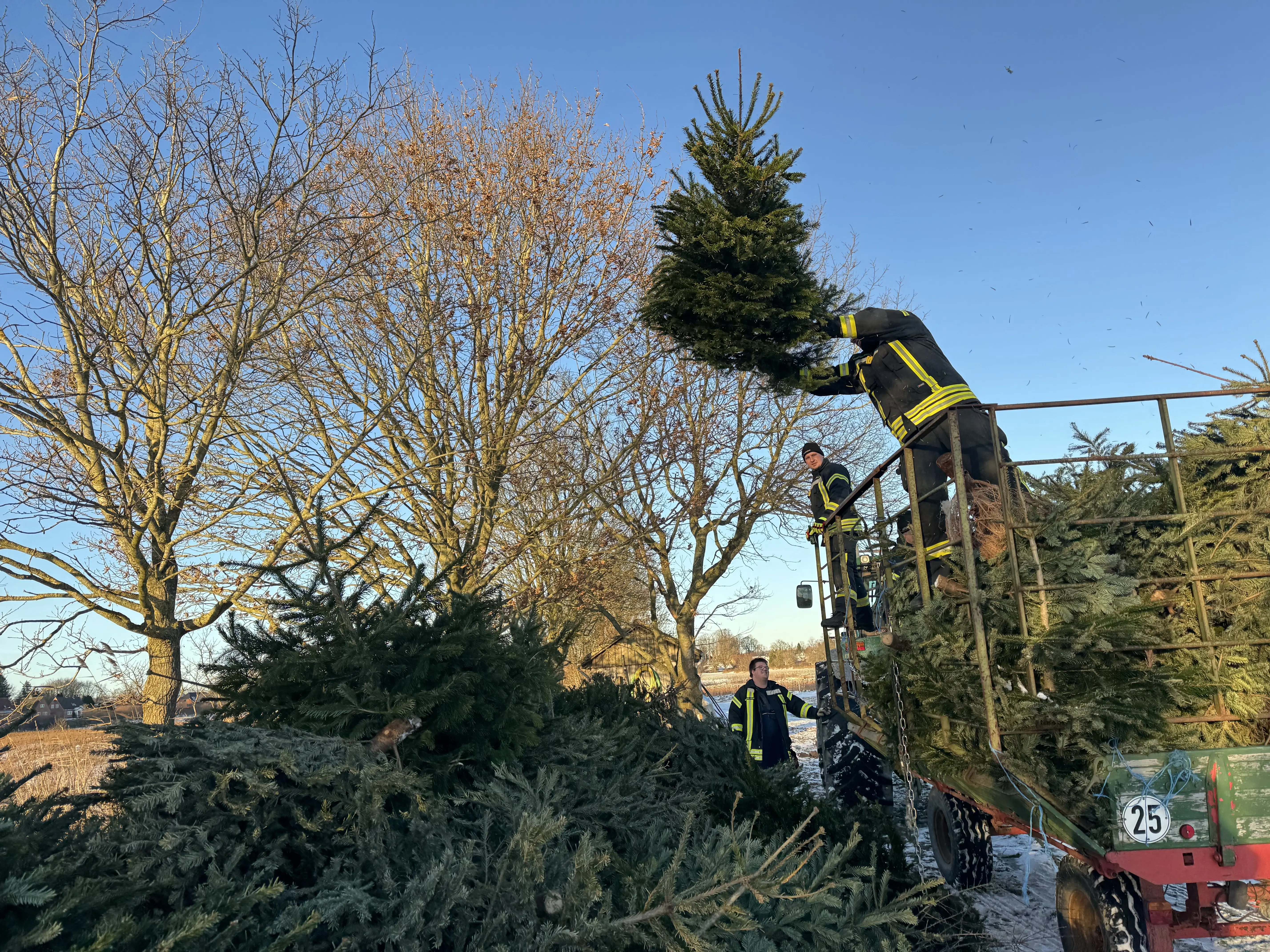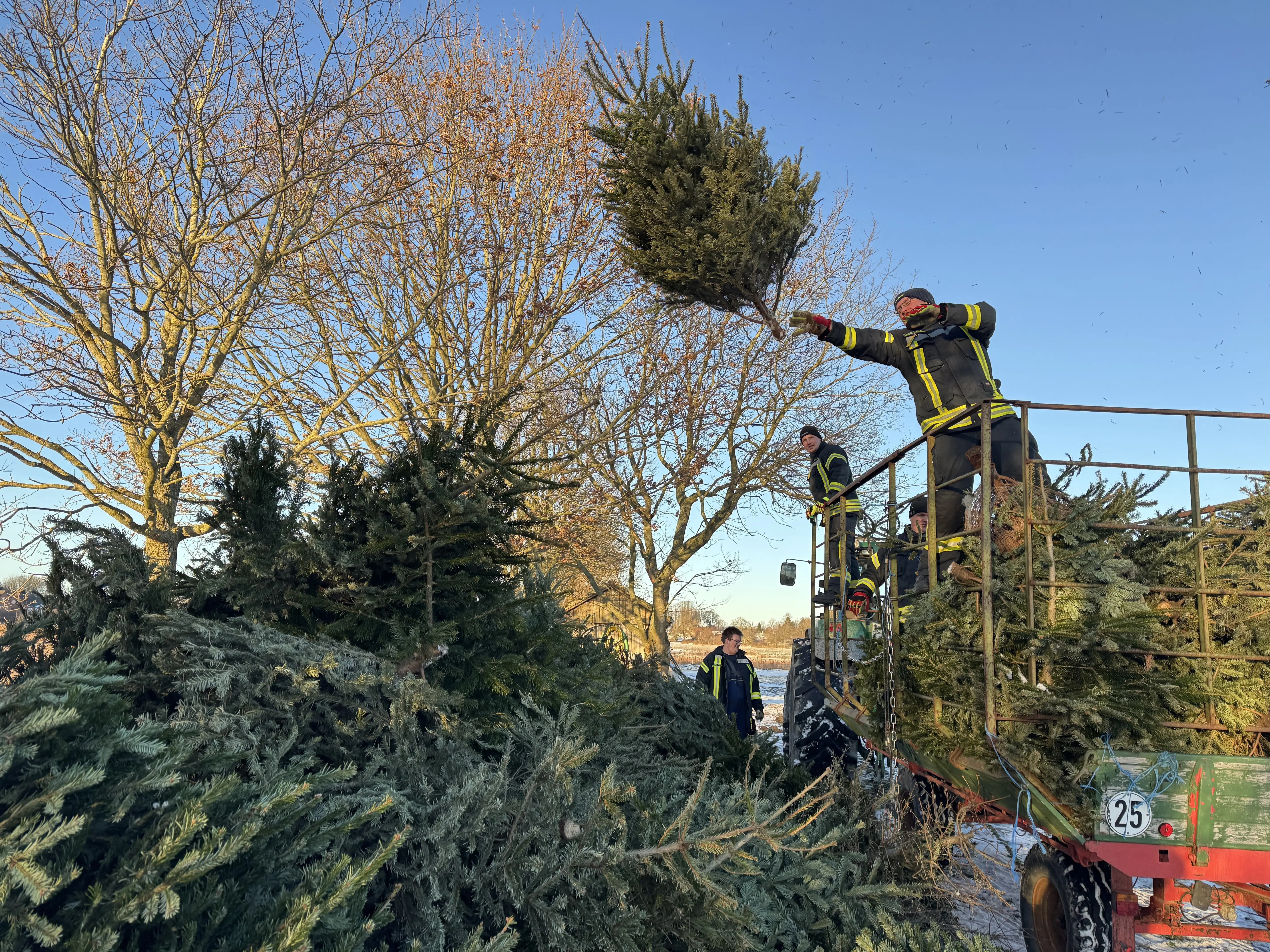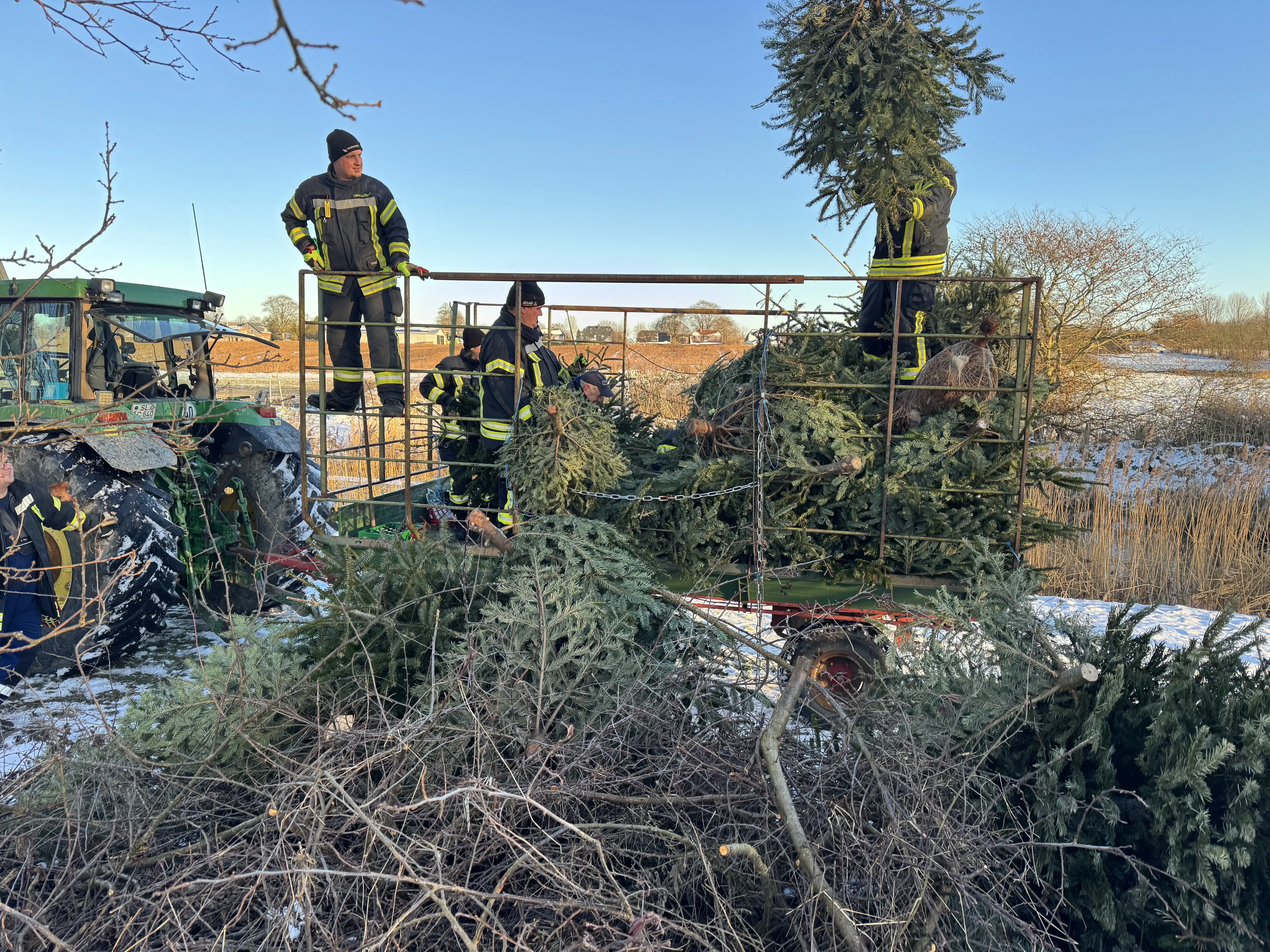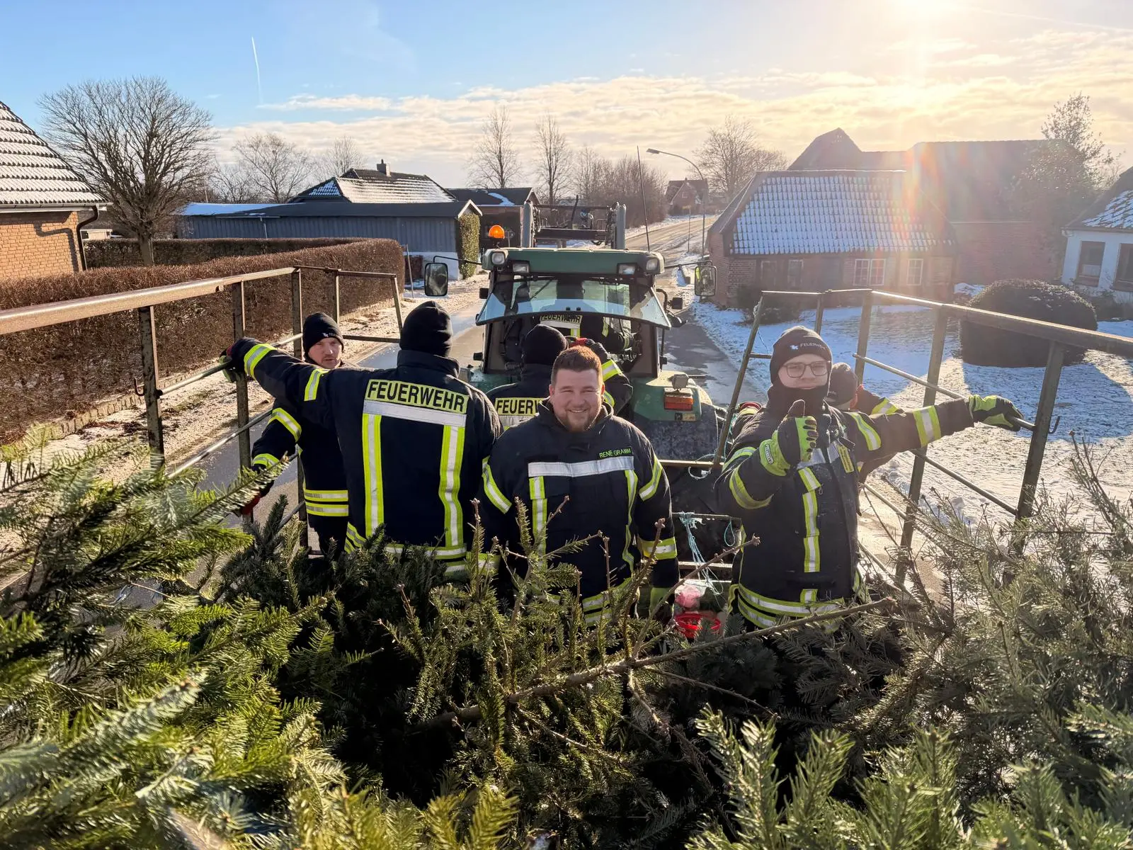 Am vergangenen Samstag waren wir wieder im Dorf unterwegs und haben mit viel guter Laune die ausgedienten Weihnachtsbäume eingesammelt. Während ein motiviertes Team mit Traktor und Anhänger durch die Straßen zog, gab es vor Uews Backstube leckere Krapfen und Viktoriaringe, dazu wärmenden Punsch und herzhafte Grillwurst.