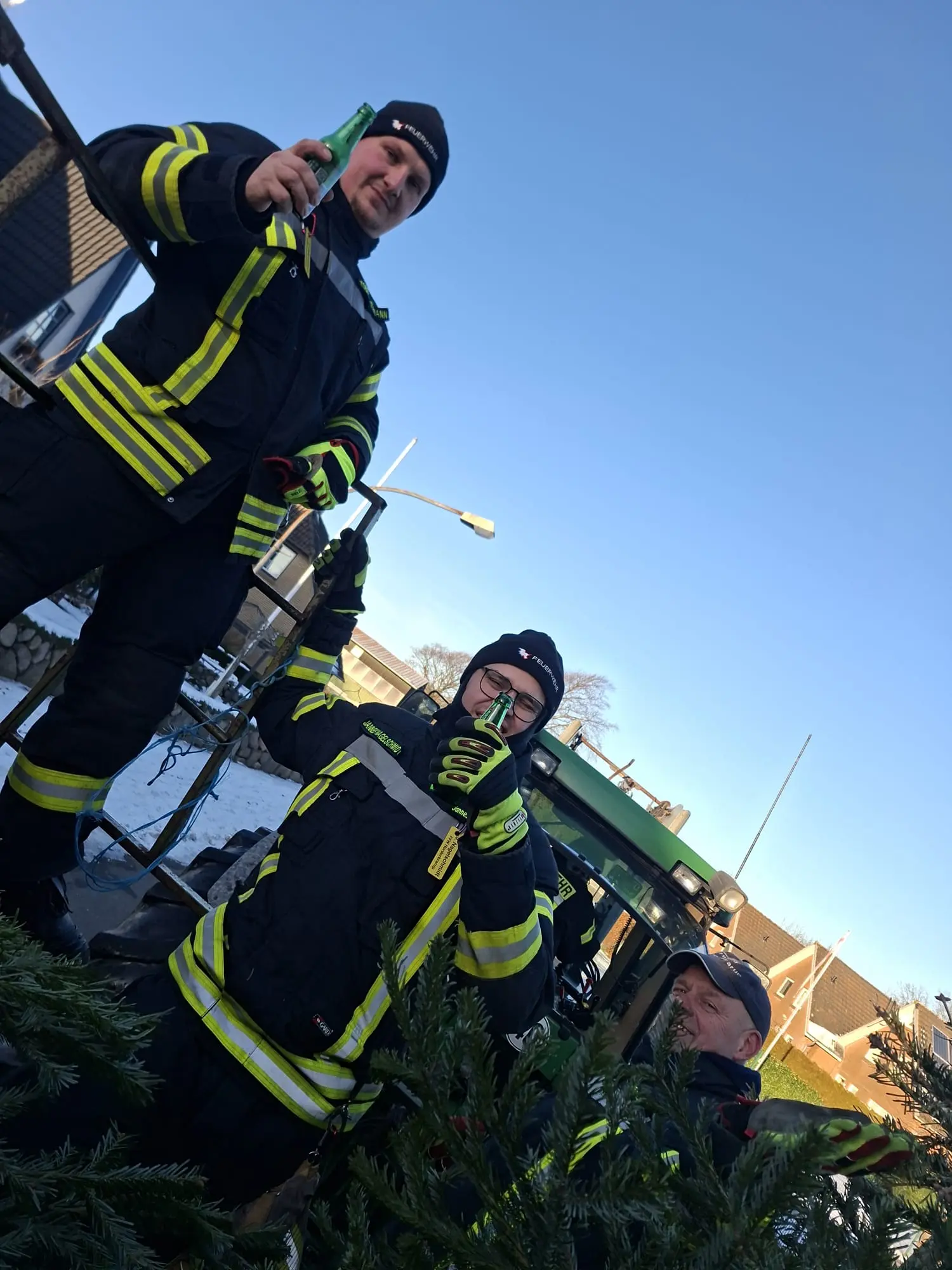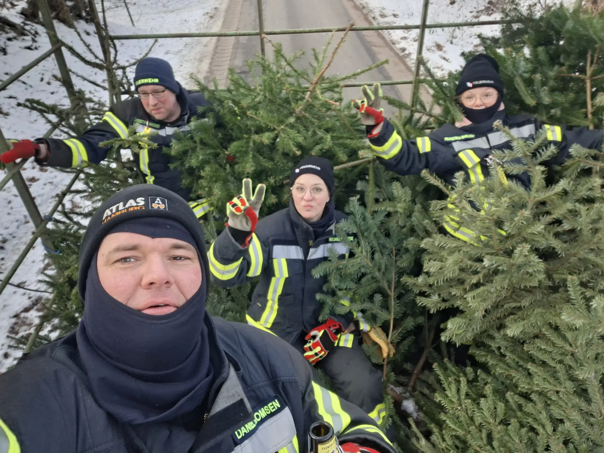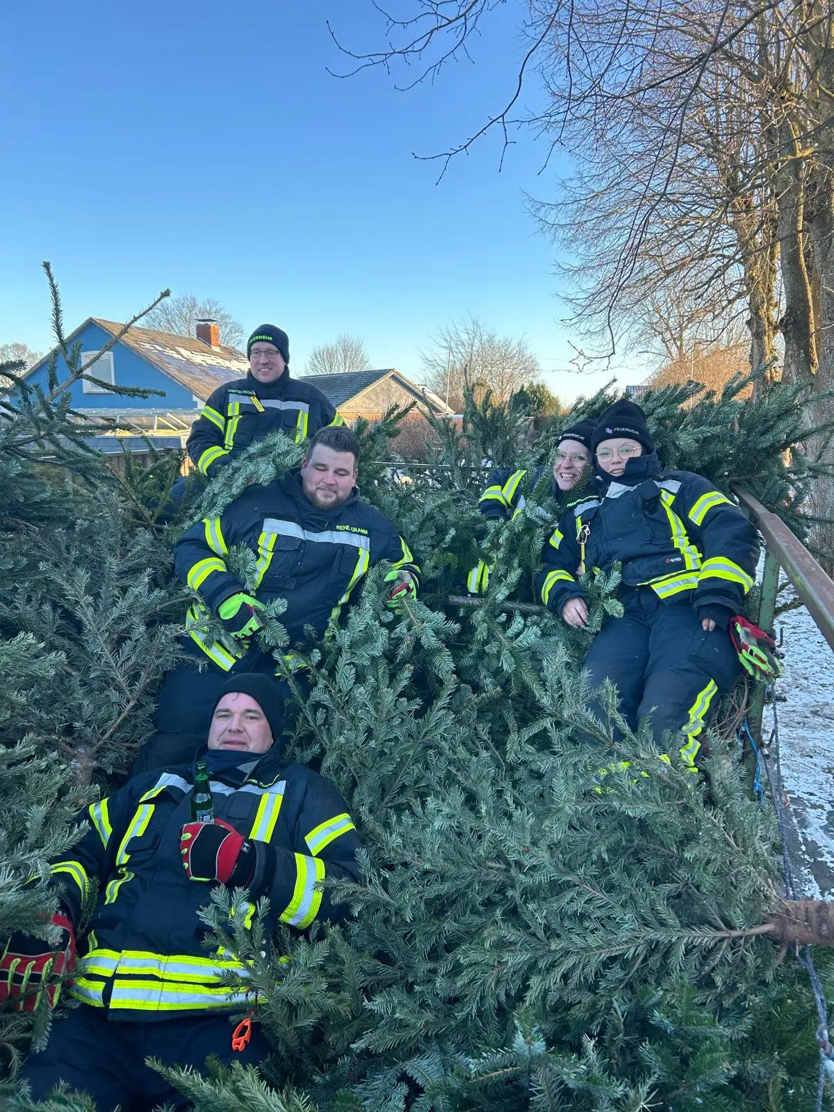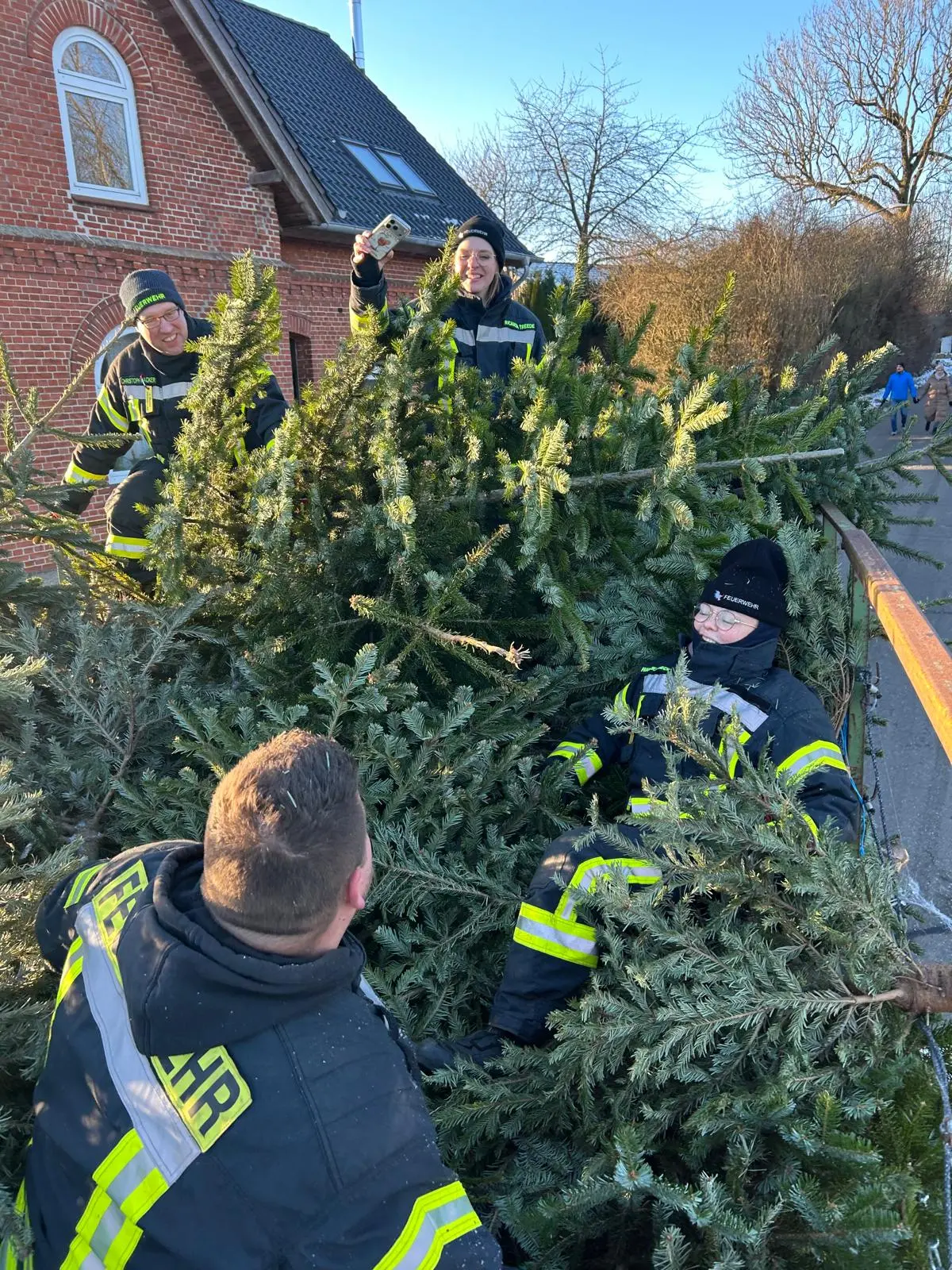 Am vergangenen Samstag waren wir wieder im Dorf unterwegs und haben mit viel guter Laune die ausgedienten Weihnachtsbäume eingesammelt. Während ein motiviertes Team mit Traktor und Anhänger durch die Straßen zog, gab es vor Uews Backstube leckere Krapfen und Viktoriaringe, dazu wärmenden Punsch und herzhafte Grillwurst.