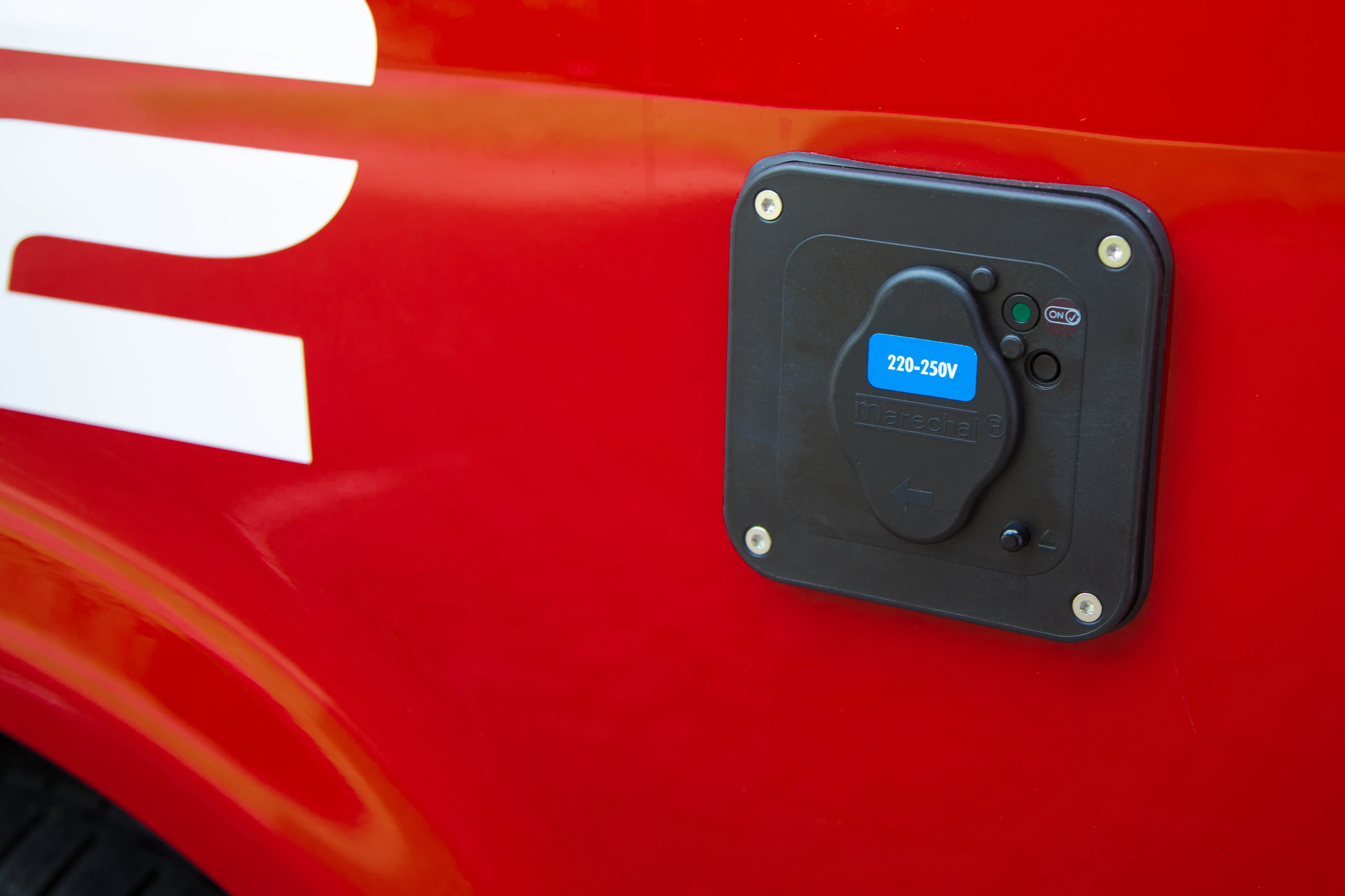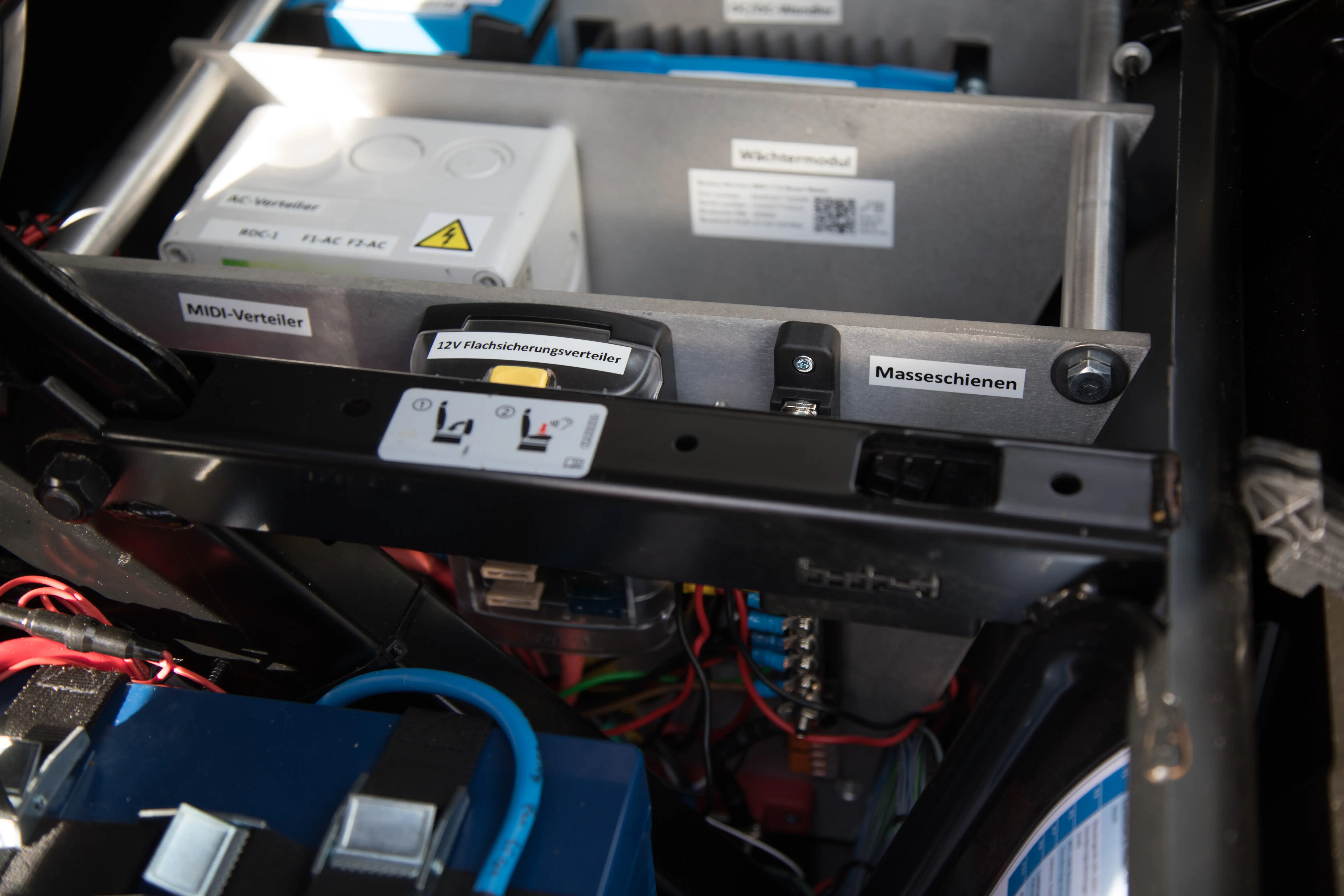 Das Fahrzeug besitzt eine LiFePo4-Aufbaubatterie, sodass die gesamte Feuerwehrtechnik unabhängig von der Starterbatterie arbeitet. Die Aufbaubatterie wird bei laufendem Motor über einen DC-DC-Ladebooster geladen. Bei Landstrombetrieb oder am Generator wird 230V AC über eine Rettbox eingespeist und beide Batterien über ein Bordladegerät geladen. Ein Batteriemonitor überwacht den Ladezustand der Aufbaubatterie und warnt bei niedrigem Akkustand um den Motor zu starten oder eine externe Spannungsversorgung herzustellen.