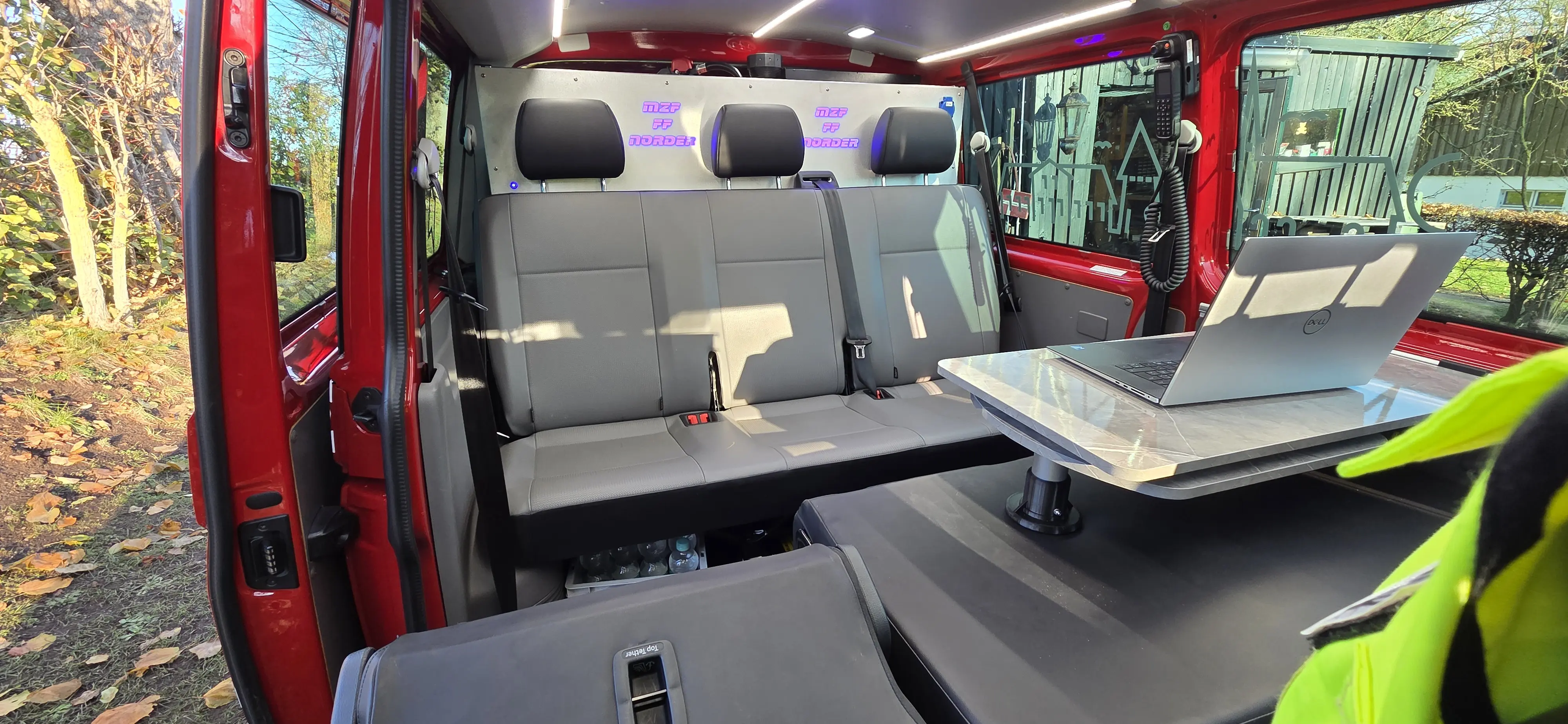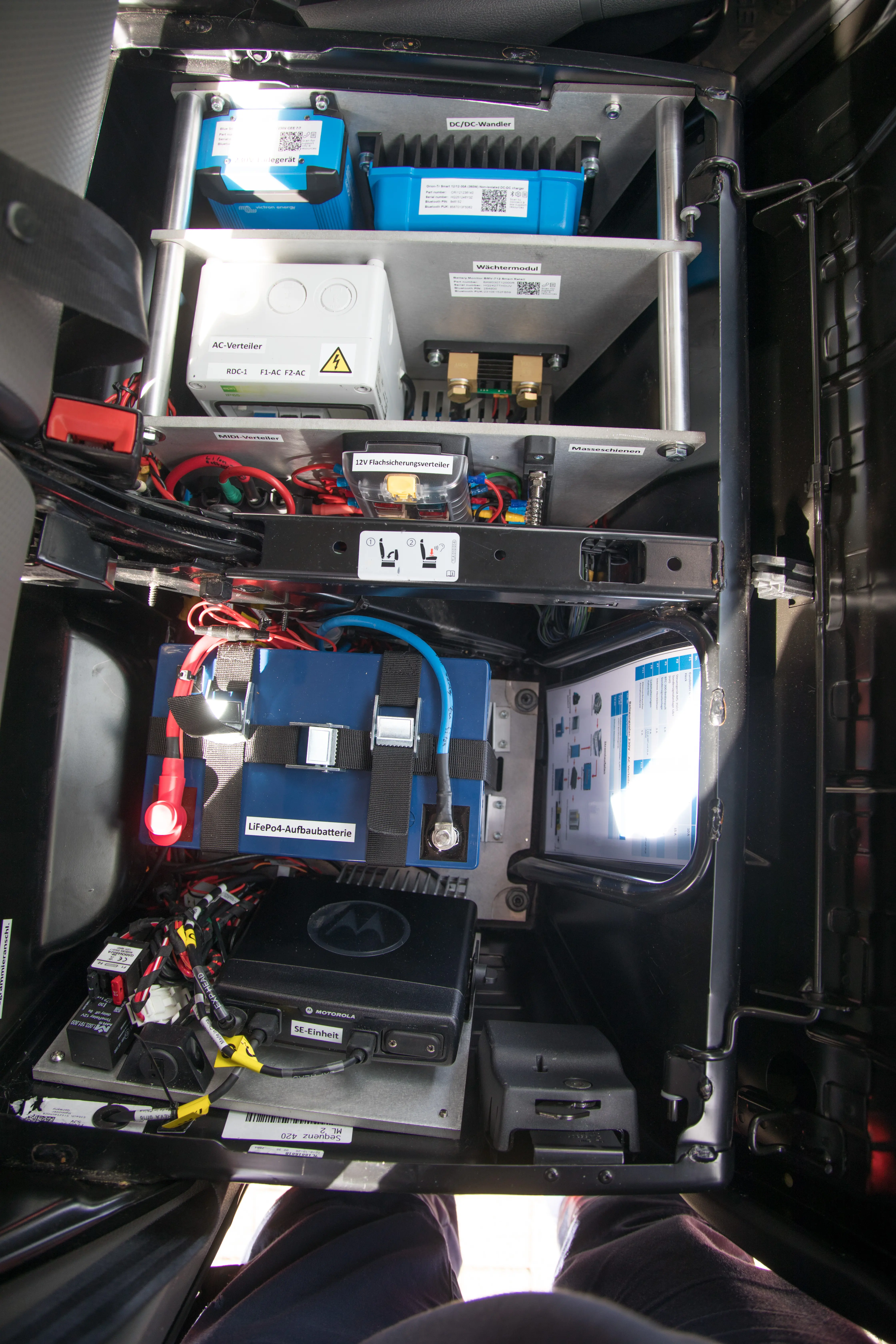 Das Auto verfügt über LTE und Wifi mit einer sendestarken Außenantenne, sodass es an der Einsatzstelle ein lokales Netzwerk und Internet zur Verfügung stellen kann.