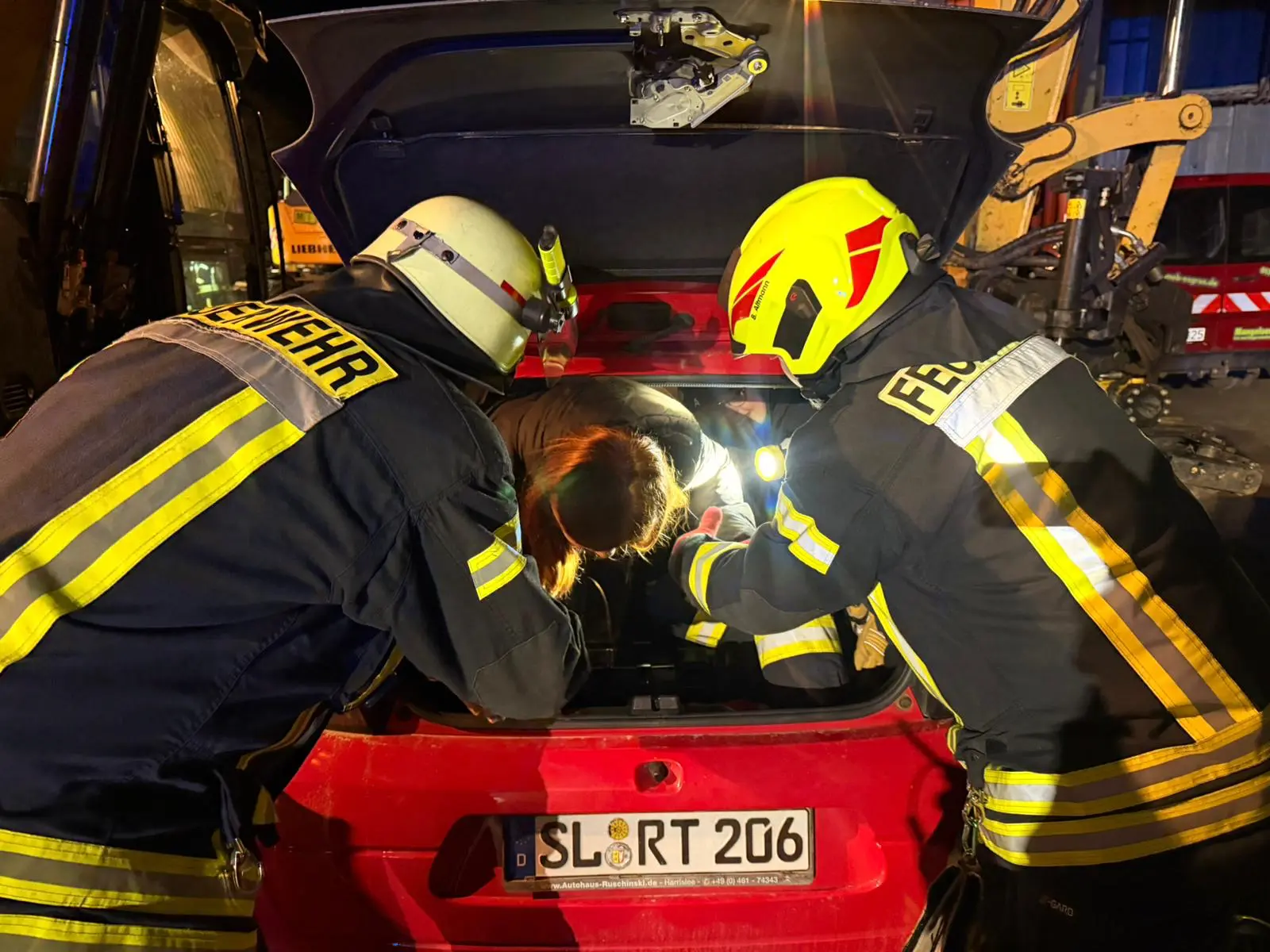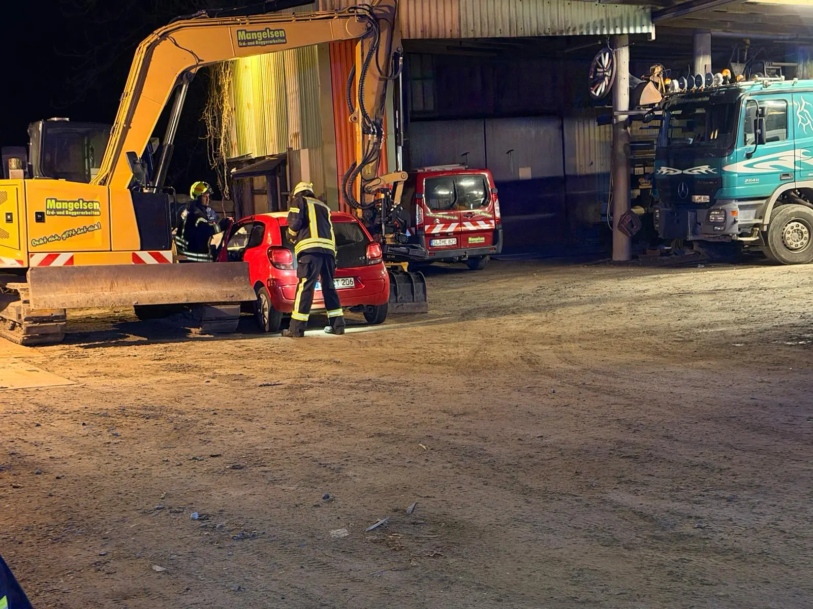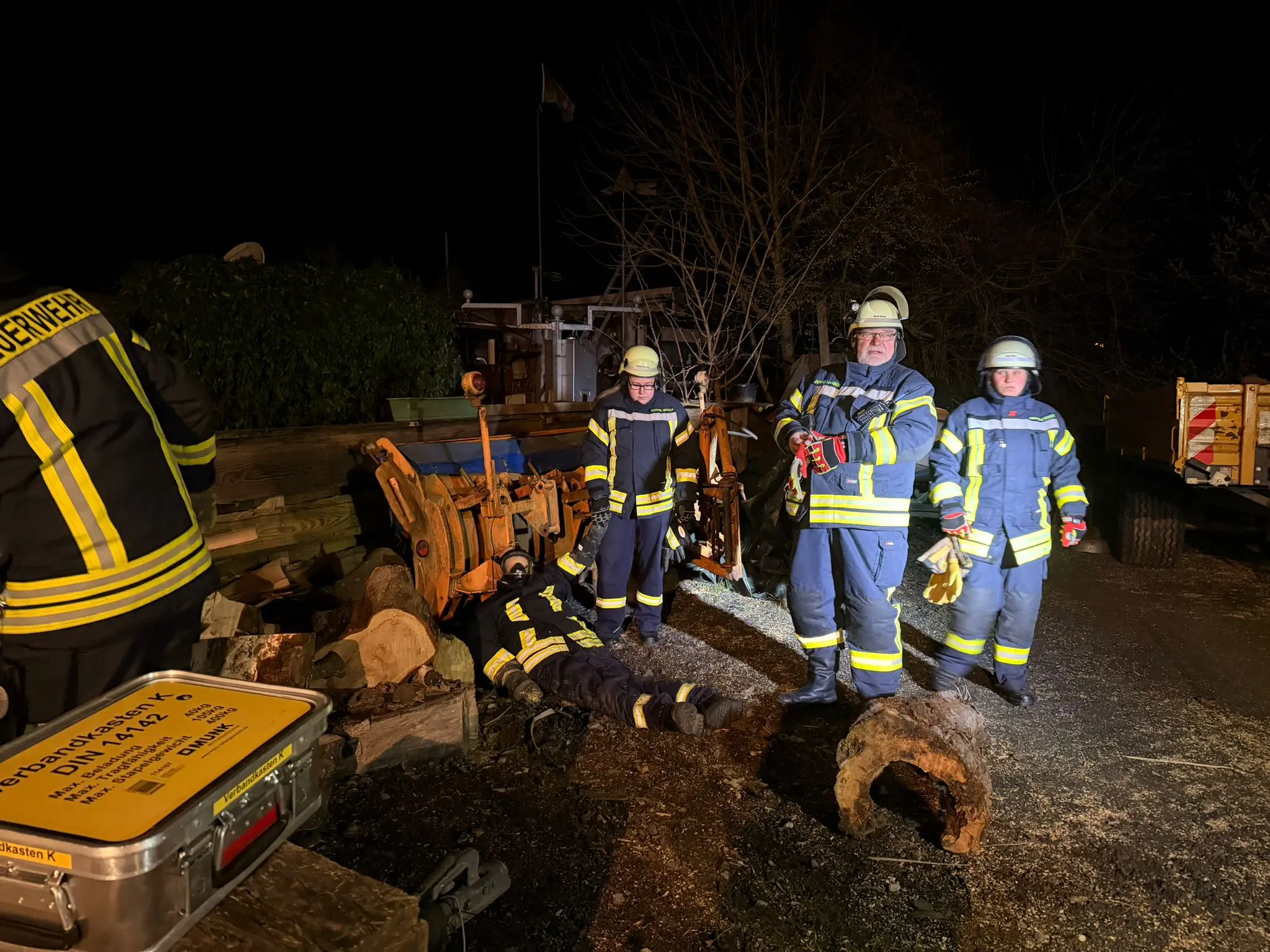 Gruppenführer Tobi, der erst kürzlich seinen Gruppenführer-Lehrgang erfolgreich abgeschlossen hat, stand dabei vor einer großen Herausforderung in dieser neuen Funktion. Vor Ort bot sich ihm ein komplexes und dynamisches Einsatzbild: Ein schwerer Verkehrsunfall zwischen einem Bagger und einem PKW mit einer eingeklemmten Person stellte die Einsatzkräfte vor große Herausforderungen. Der leicht verletzte Bagger-Fahrer hatte sich unter Schock von der Unfallstelle entfernt und galt als vermisst. Zusätzlich wurde ein Forstarbeiter, der ebenfalls zum Bagger gehörte, durch eine Kettensäge verletzt und unter einem Baum eingeklemmt.