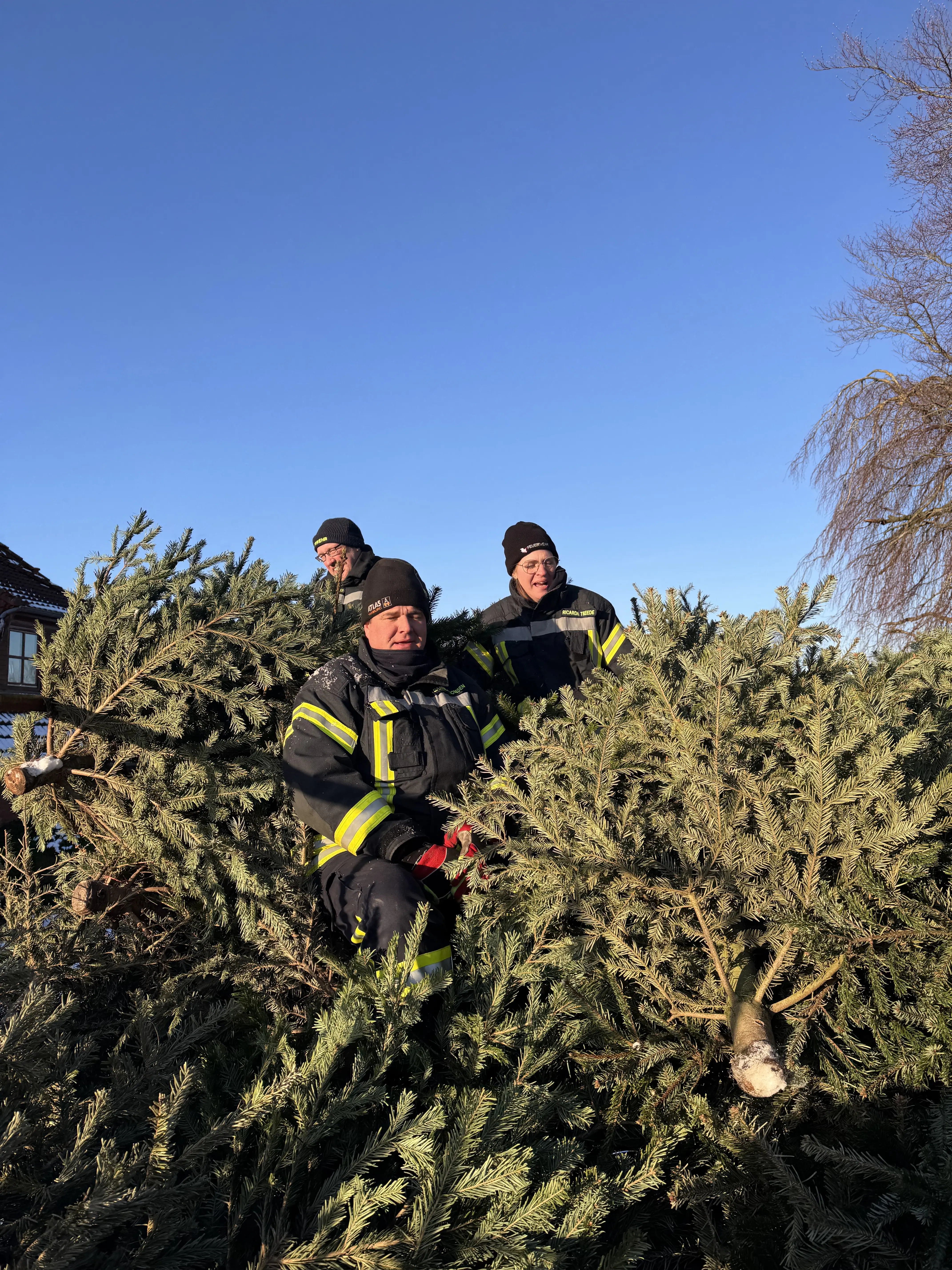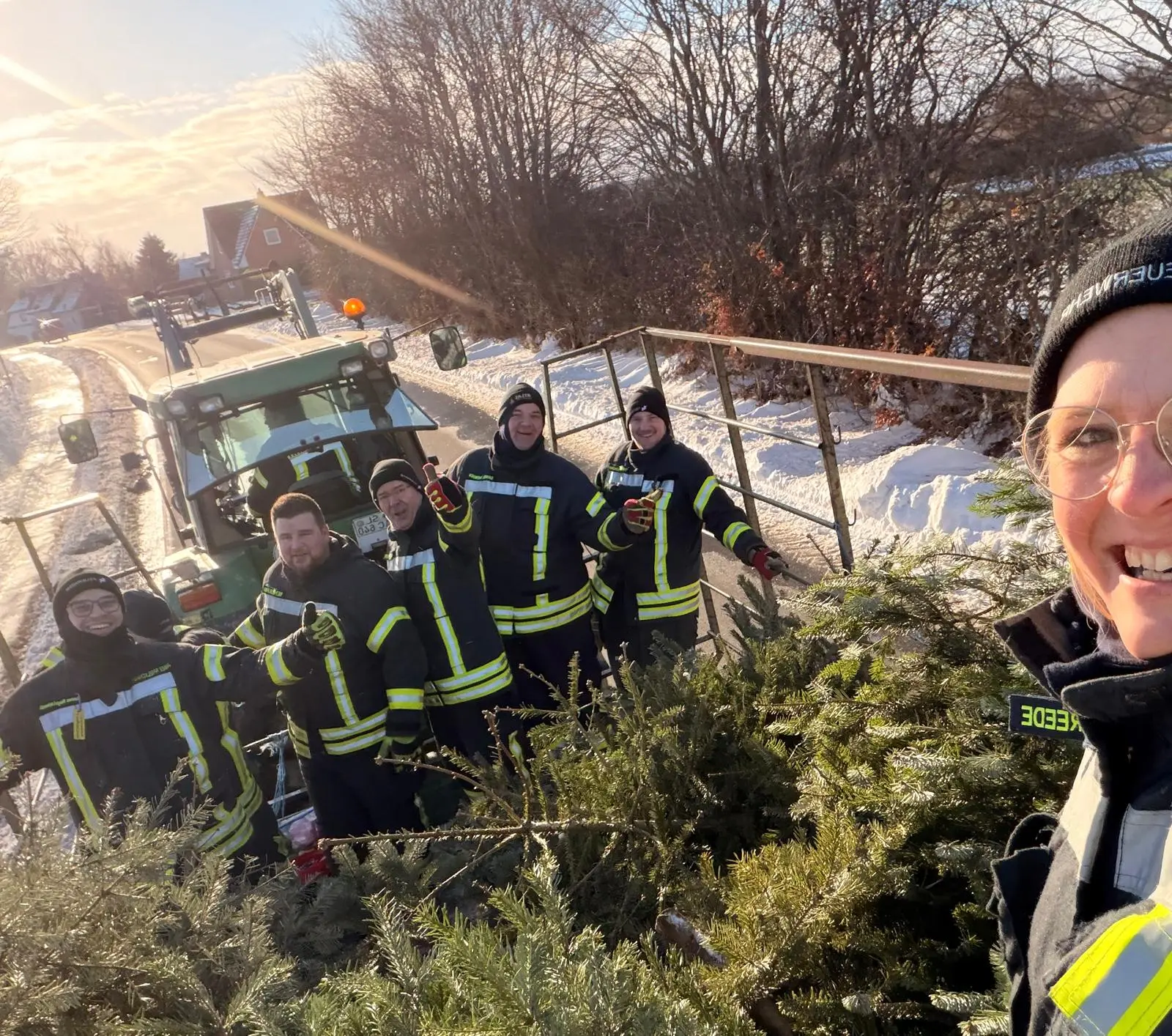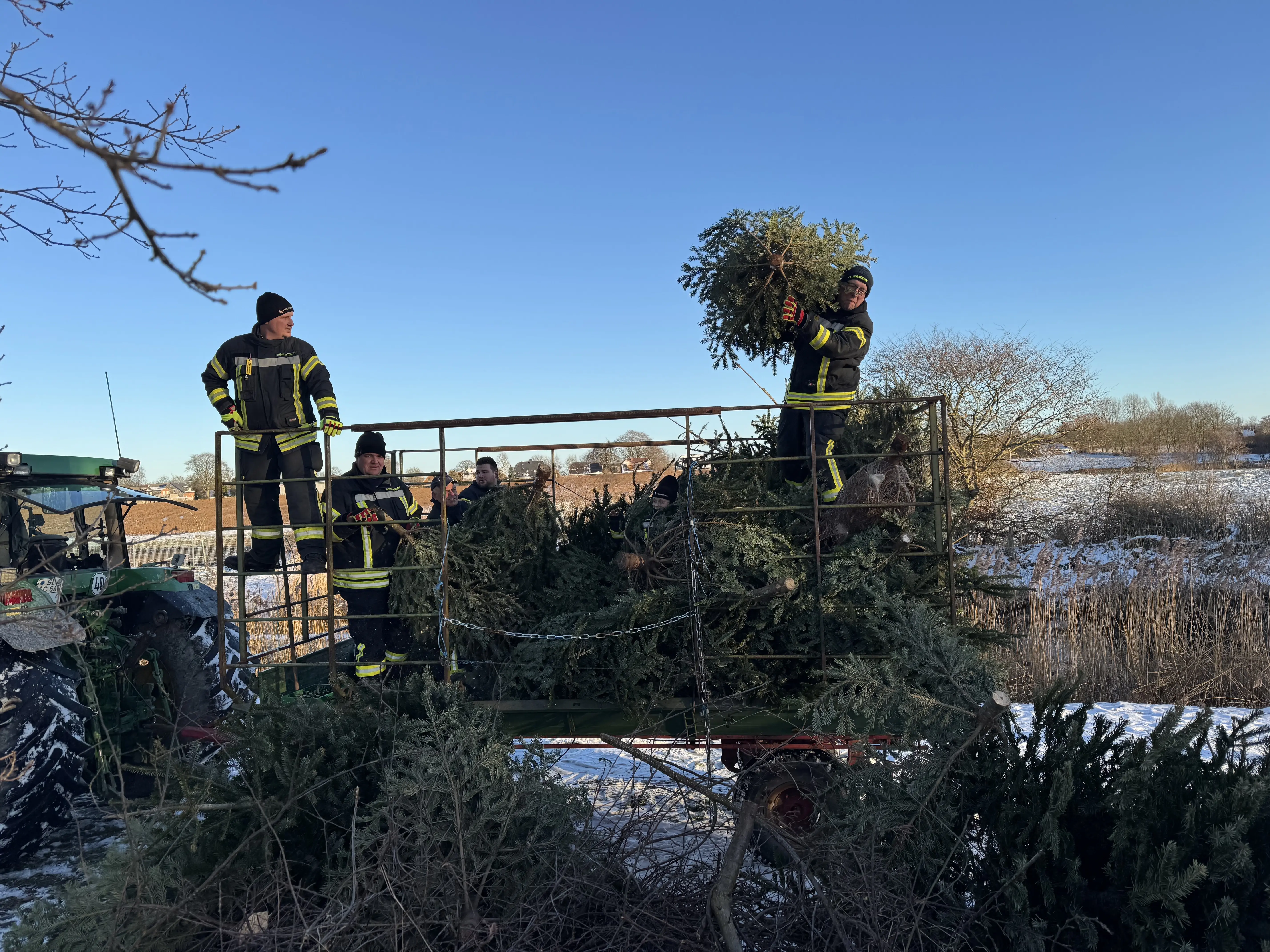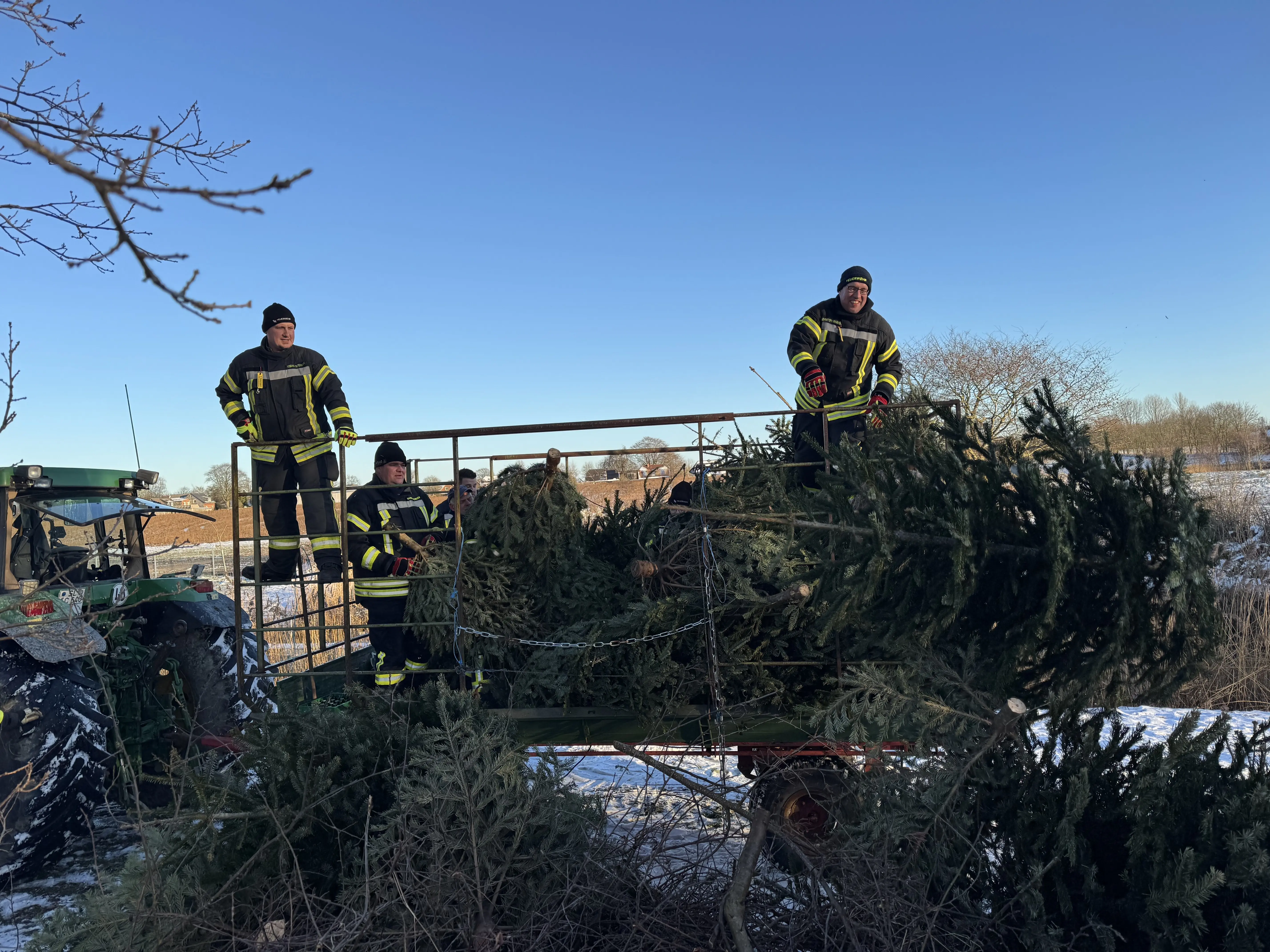 Am vergangenen Samstag waren wir wieder im Dorf unterwegs und haben mit viel guter Laune die ausgedienten Weihnachtsbäume eingesammelt. Während ein motiviertes Team mit Traktor und Anhänger durch die Straßen zog, gab es vor Uews Backstube leckere Krapfen und Viktoriaringe, dazu wärmenden Punsch und herzhafte Grillwurst.