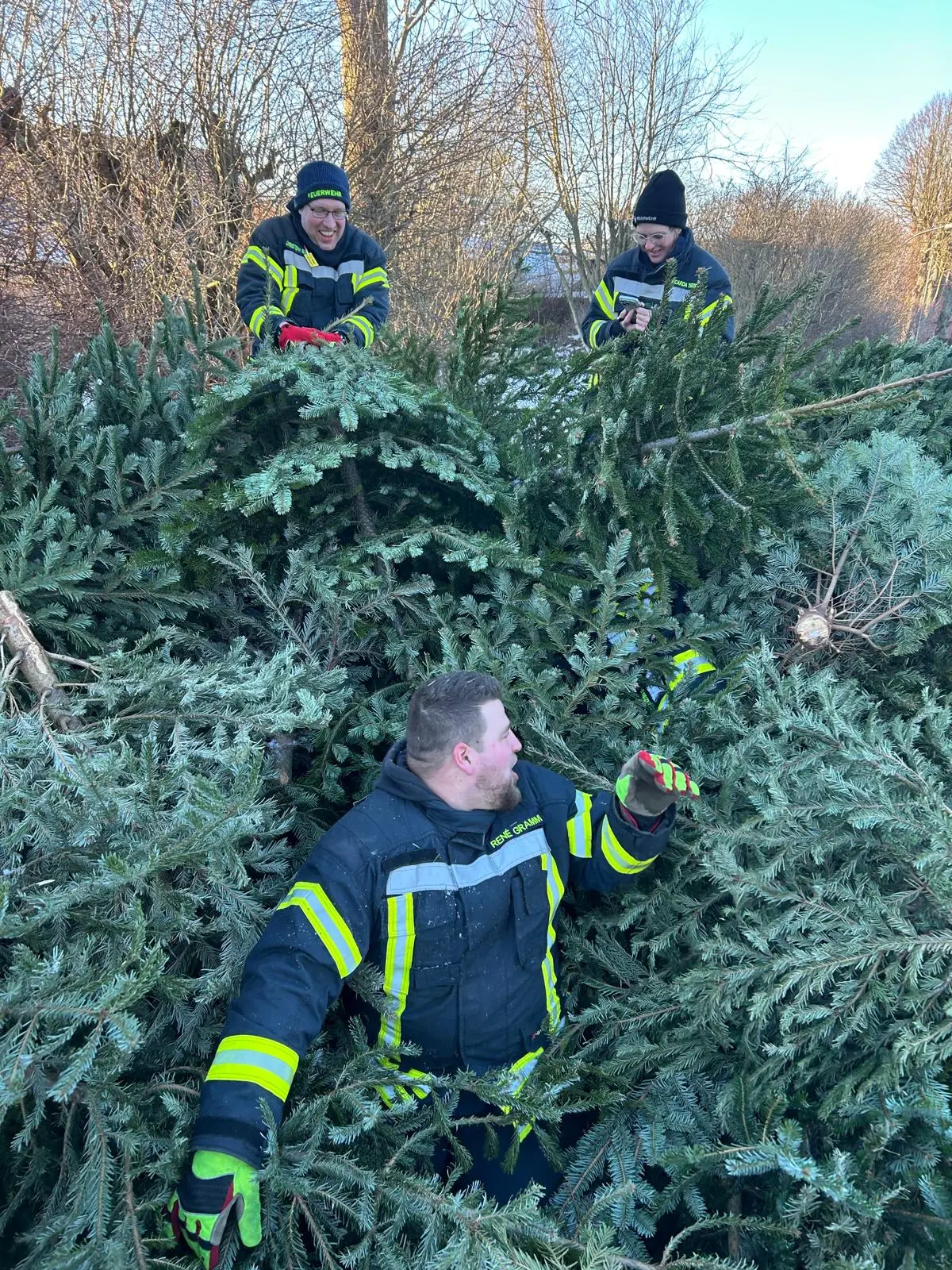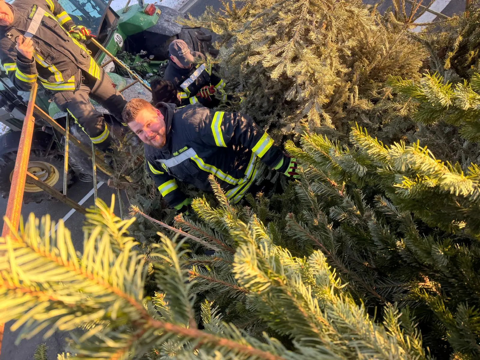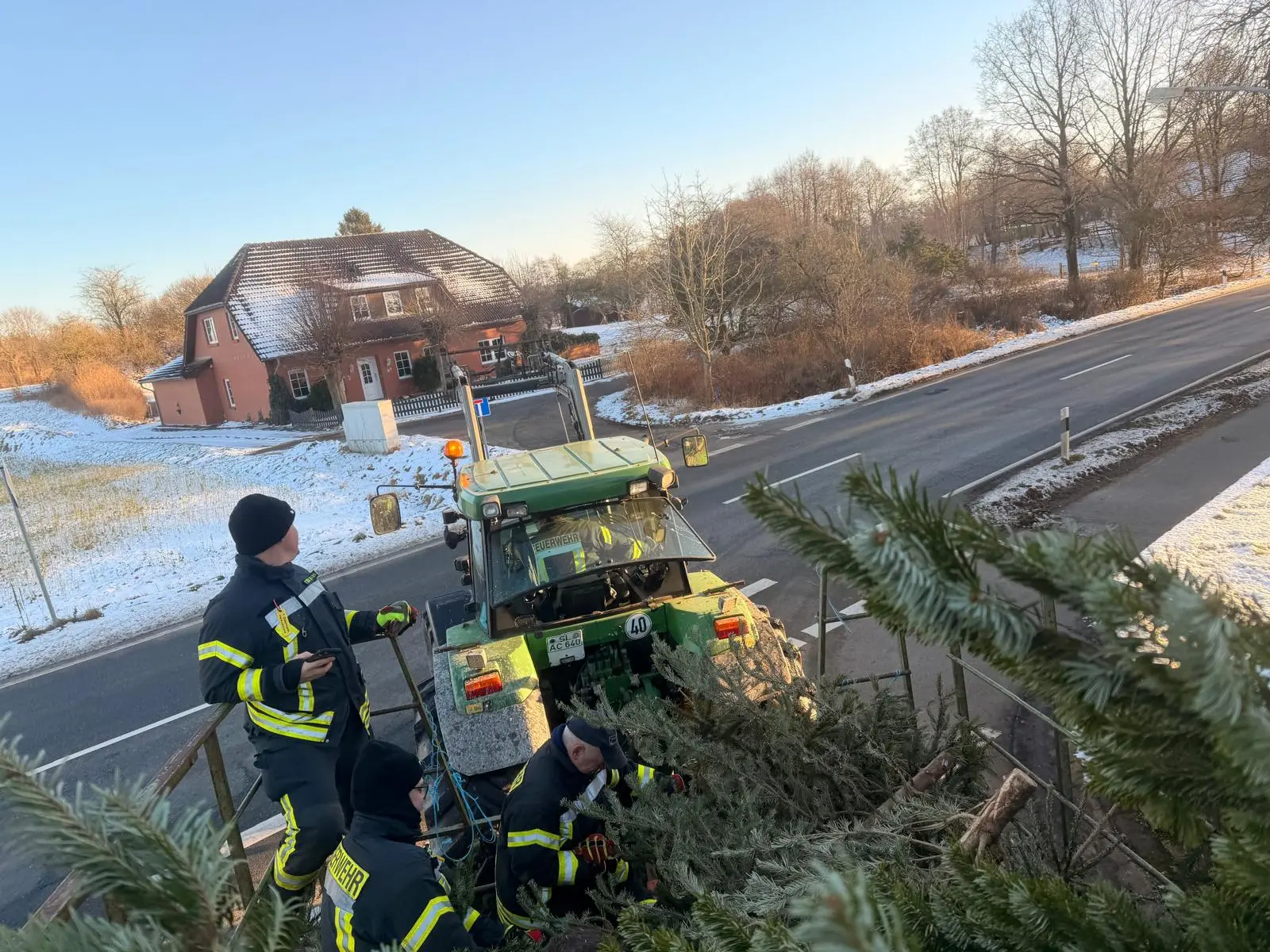 Am vergangenen Samstag waren wir wieder im Dorf unterwegs und haben mit viel guter Laune die ausgedienten Weihnachtsbäume eingesammelt. Während ein motiviertes Team mit Traktor und Anhänger durch die Straßen zog, gab es vor Uews Backstube leckere Krapfen und Viktoriaringe, dazu wärmenden Punsch und herzhafte Grillwurst.