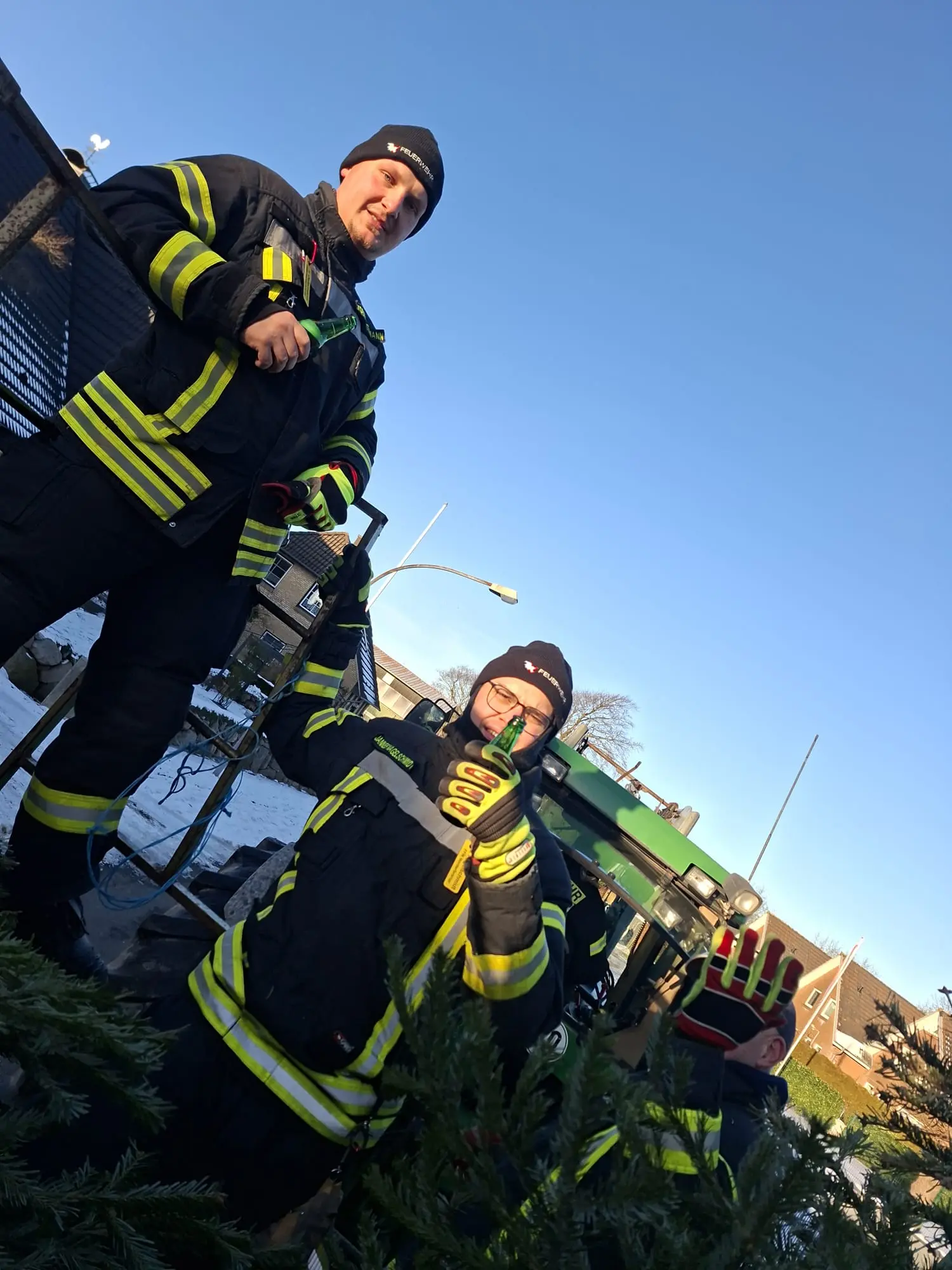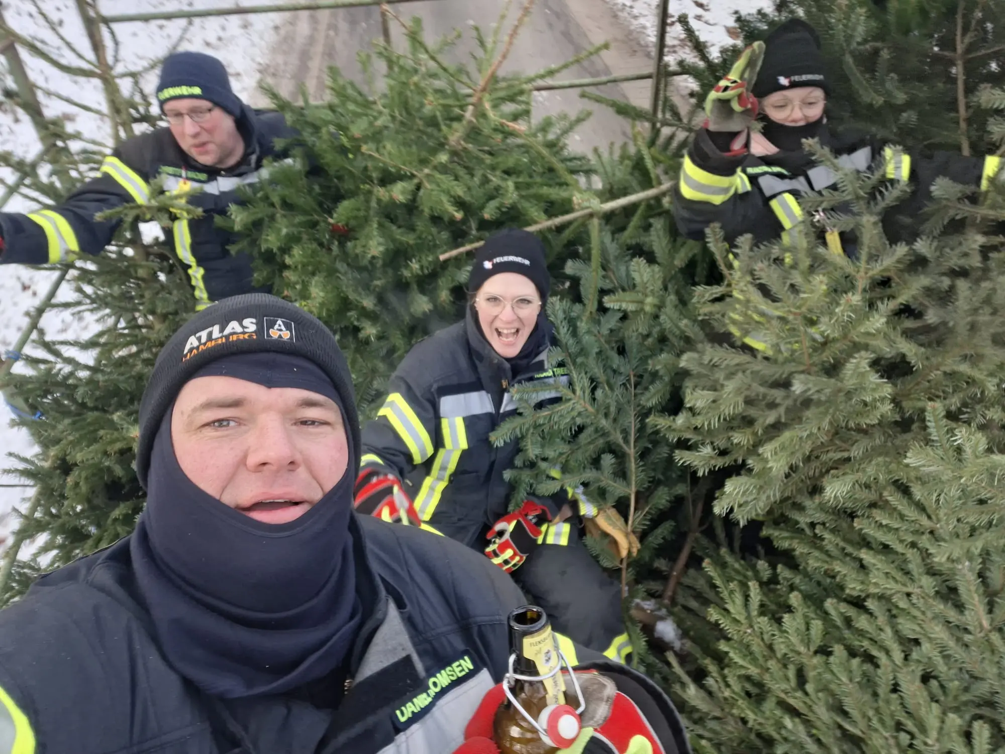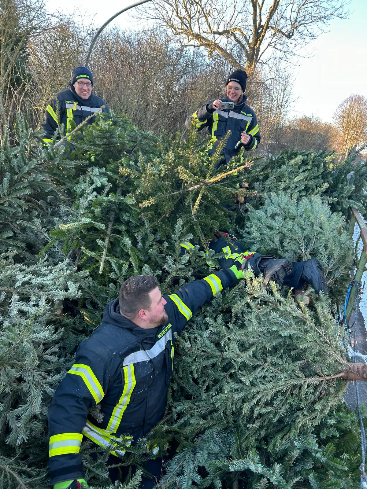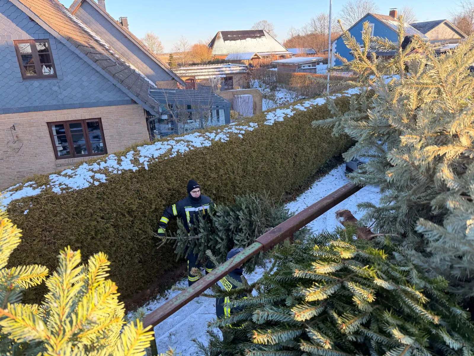 Am vergangenen Samstag waren wir wieder im Dorf unterwegs und haben mit viel guter Laune die ausgedienten Weihnachtsbäume eingesammelt. Während ein motiviertes Team mit Traktor und Anhänger durch die Straßen zog, gab es vor Uews Backstube leckere Krapfen und Viktoriaringe, dazu wärmenden Punsch und herzhafte Grillwurst.