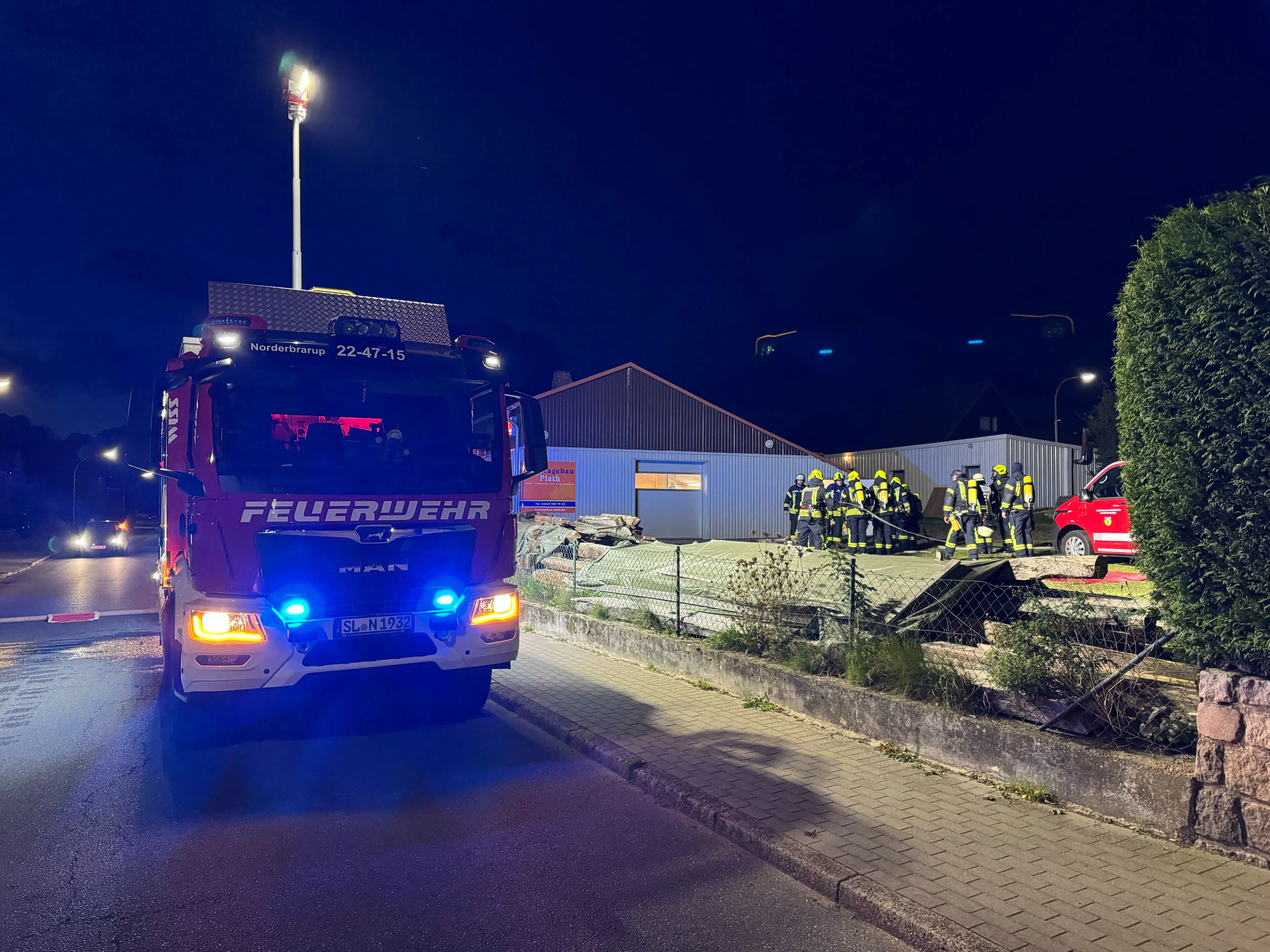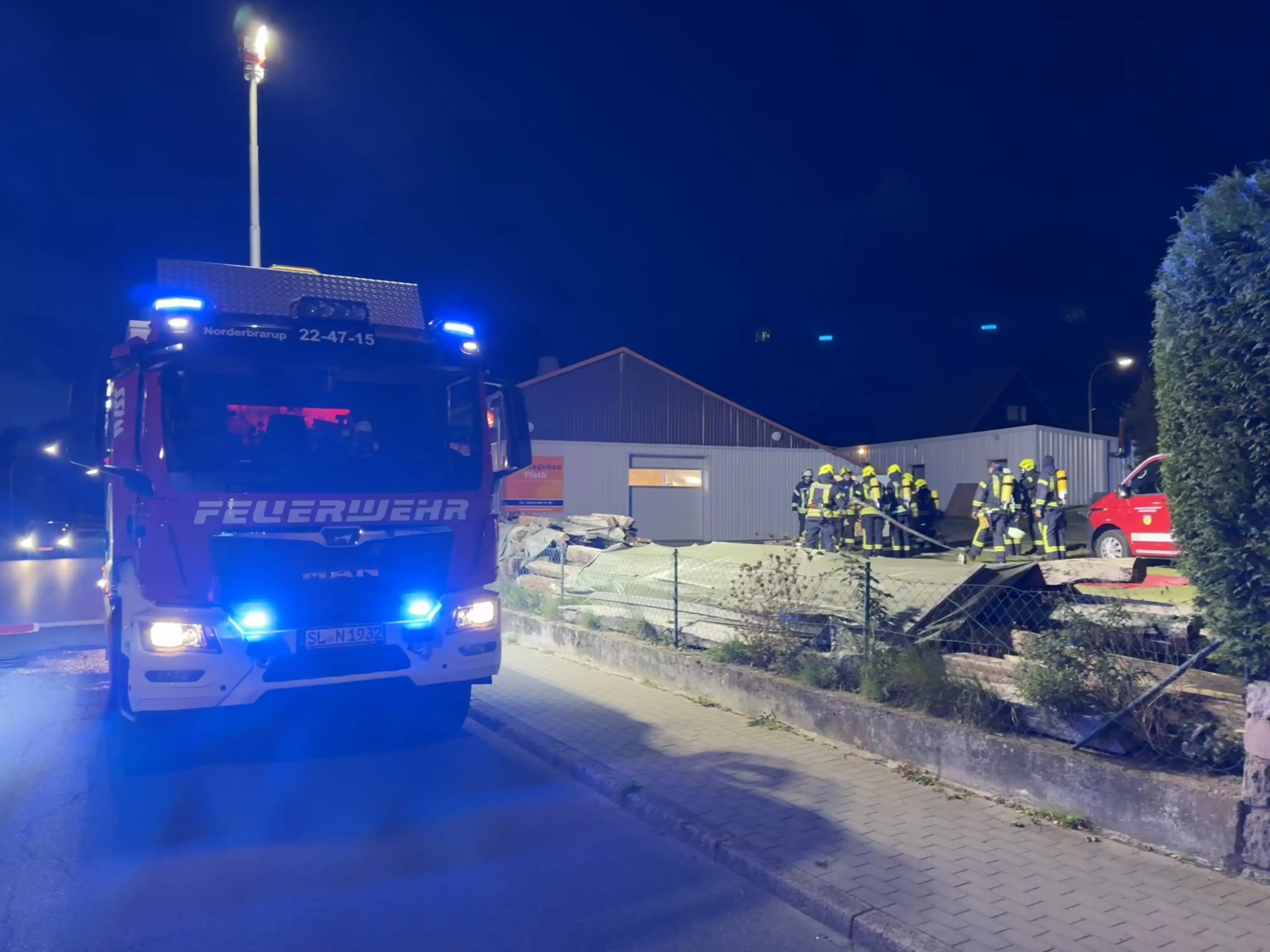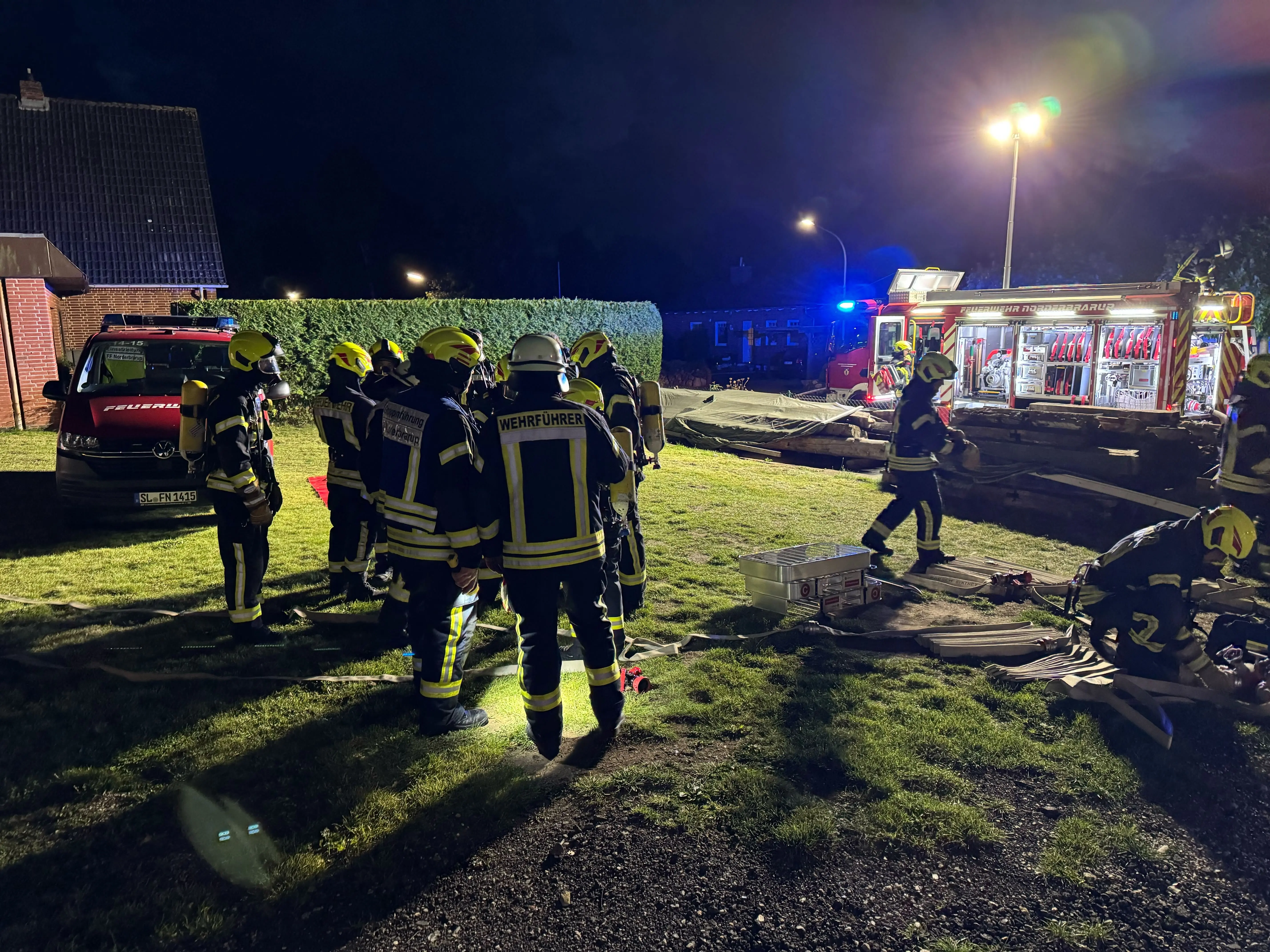 Ausgerichtet wurde die Übung von der Freiwilligen Feuerwehr Norderbrarup. Das angenommene Szenario stellte die Einsatzkräfte vor eine anspruchsvolle Lage: Ein komplizierter Wohnungsbrand mit angrenzender Lagerhalle, in der vier Personen vermisst wurden. Unter realistischen Bedingungen konnten die Trupps ihr Vorgehen trainieren, die Zusammenarbeit festigen und wertvolle Erfahrungen für den Ernstfall sammeln.