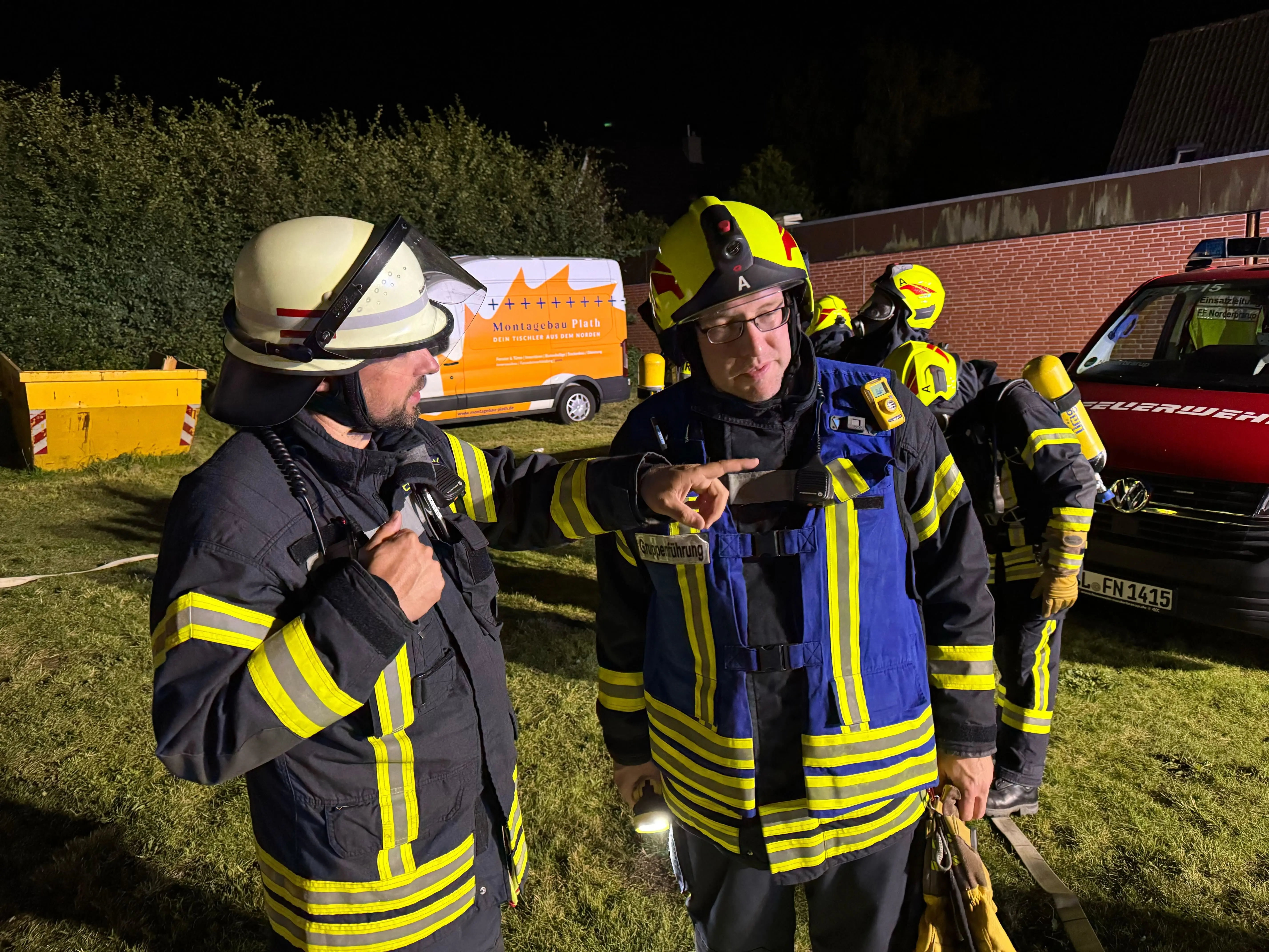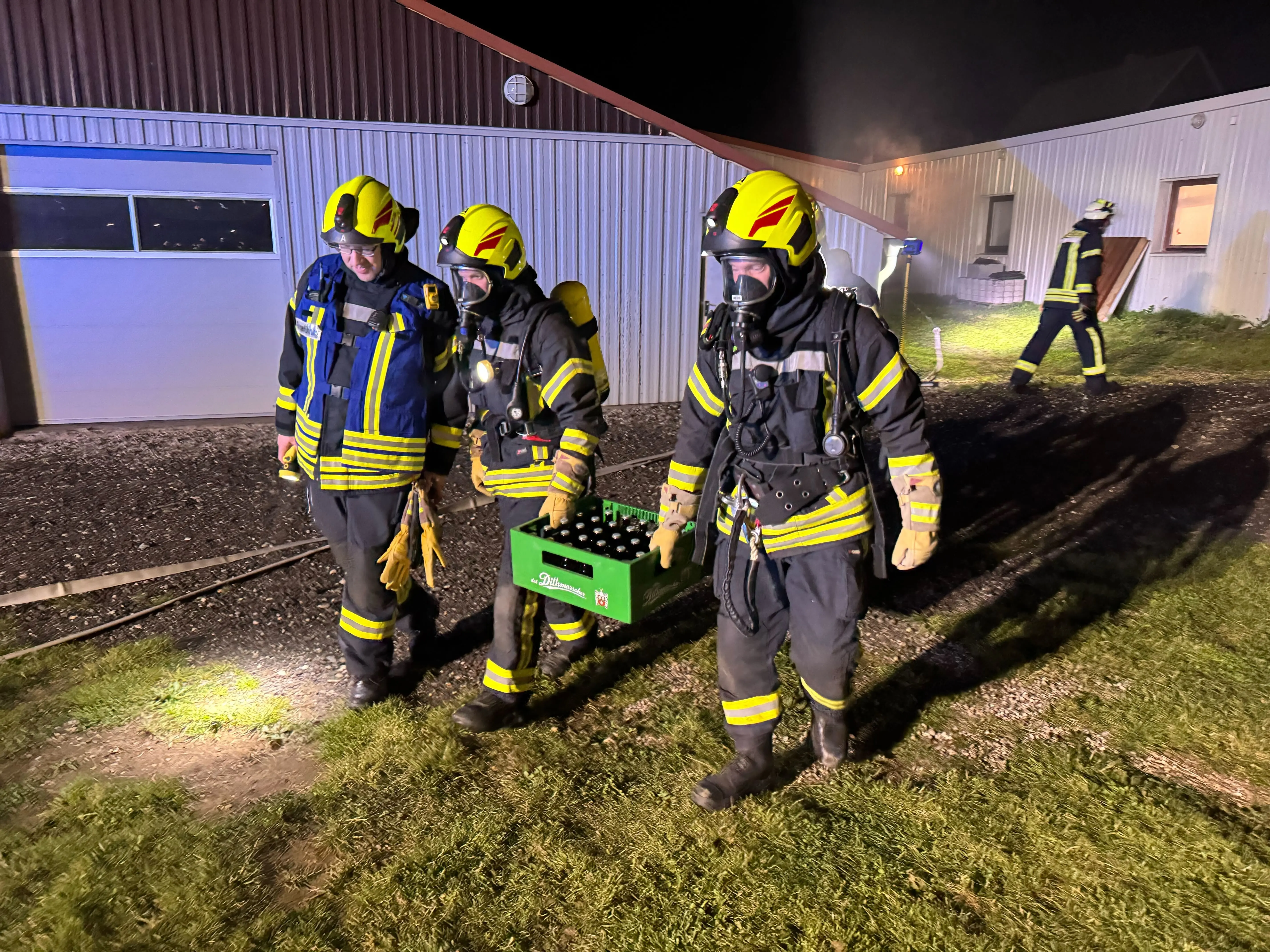 Ein besonderer Dank gilt der Firma Montagebau Plath, die nicht nur das Übungsobjekt zur Verfügung stellte, sondern die Teilnehmer im Anschluss auch mit hopfenhaltigen Getränken versorgte.